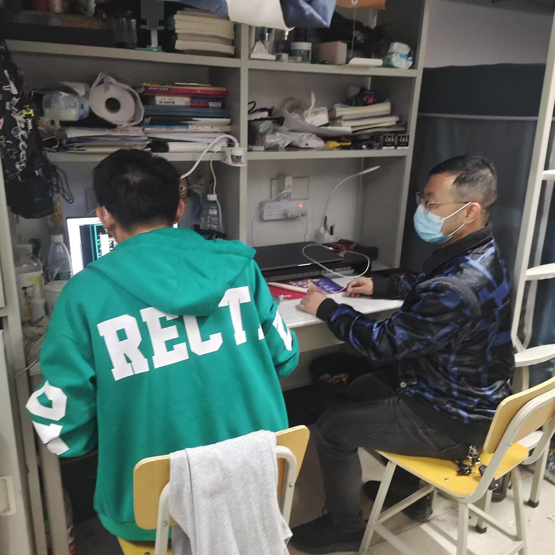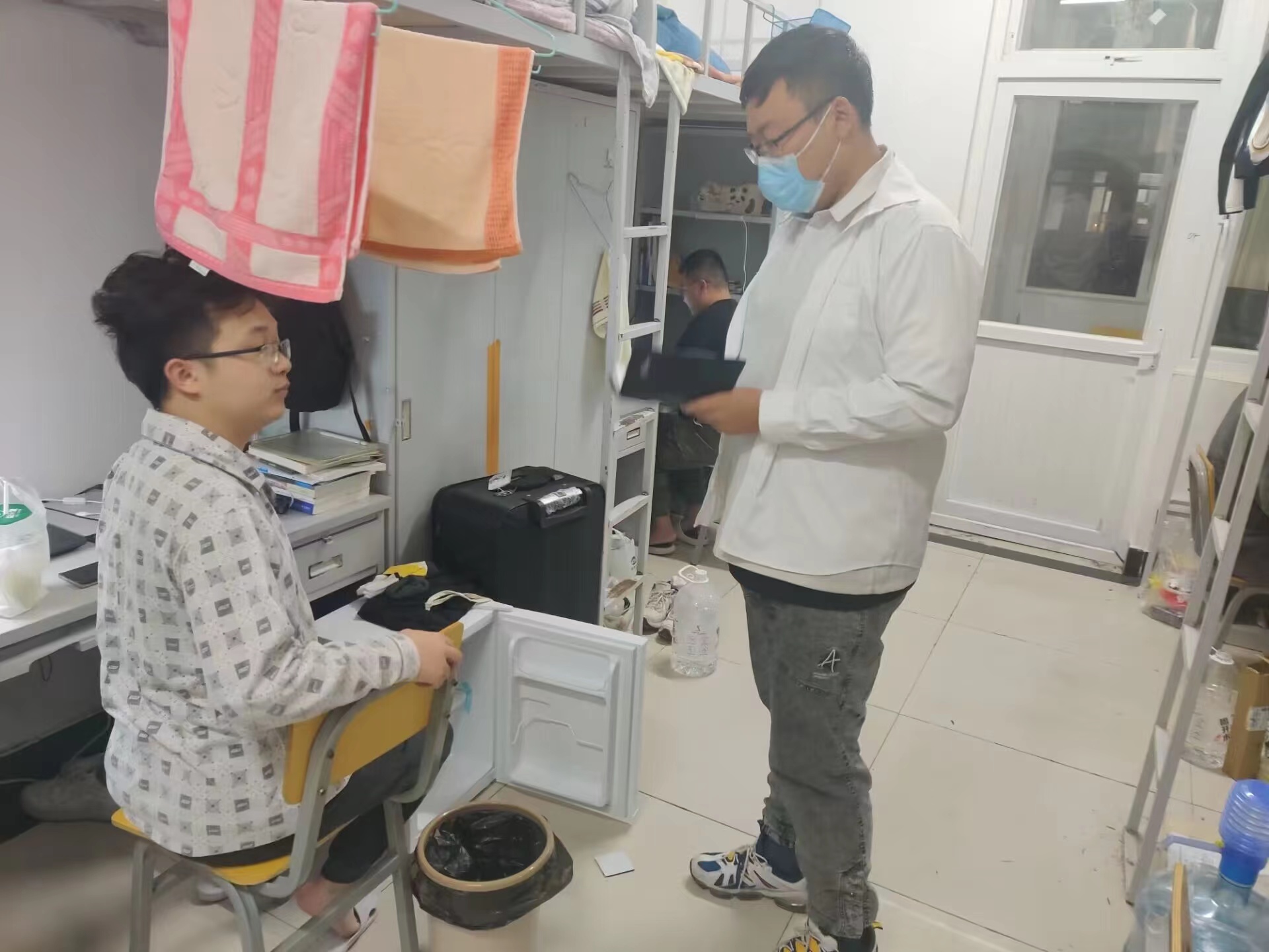 各老师仔细查看了学生宿舍内务整理、卫生安全以及通风消毒等情况,再次向同学们强调疫情防控和宿舍安全的重要性,且就线上教学与同学们进行深入交流。并提醒同学们,要加强防范意识、做好个人防护,疫情期间戴好口罩,按时参加全员核酸检测、不漏一人,时刻保护好自己。老师们鼓励大家,要勤勤恳恳地学习好专业基本知识,切实保证自身作息时间与饮食规律、劳逸结合。同时告诉同学们学校后勤物资保障充足,生活有保障,不必担心。同学们纷纷表示,一定会严格遵守学校各项防疫规定,按时完成每日健康打卡,参加全员核酸检测,不漏一人,携手抗疫。