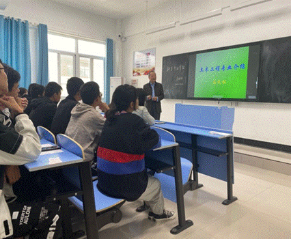 马成松教授对土木工程专业进行介绍。他围绕该专业的学习科目、从业者业务知识和能力、展示生活中常见的建筑和工作要求进行介绍,让同学们更加直观了解到此专业的培养方向。马教授指出,在认真学习课程知识的同时,也要注重工程能力的培养,为今后就业打下坚实基础。