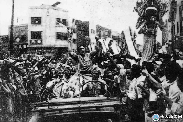 重庆庆祝抗战胜利的游行队伍。(资料图片)新华社发