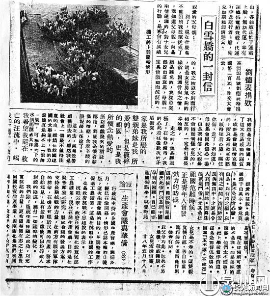 1939年5月19日,马来西亚《光华日报》刊登的白雪樵家书。