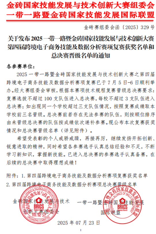 【喜报】我院学子在“2025一带一路暨金砖国家跨境电商技能及数据分析赛项”全国复赛中荣获佳绩!