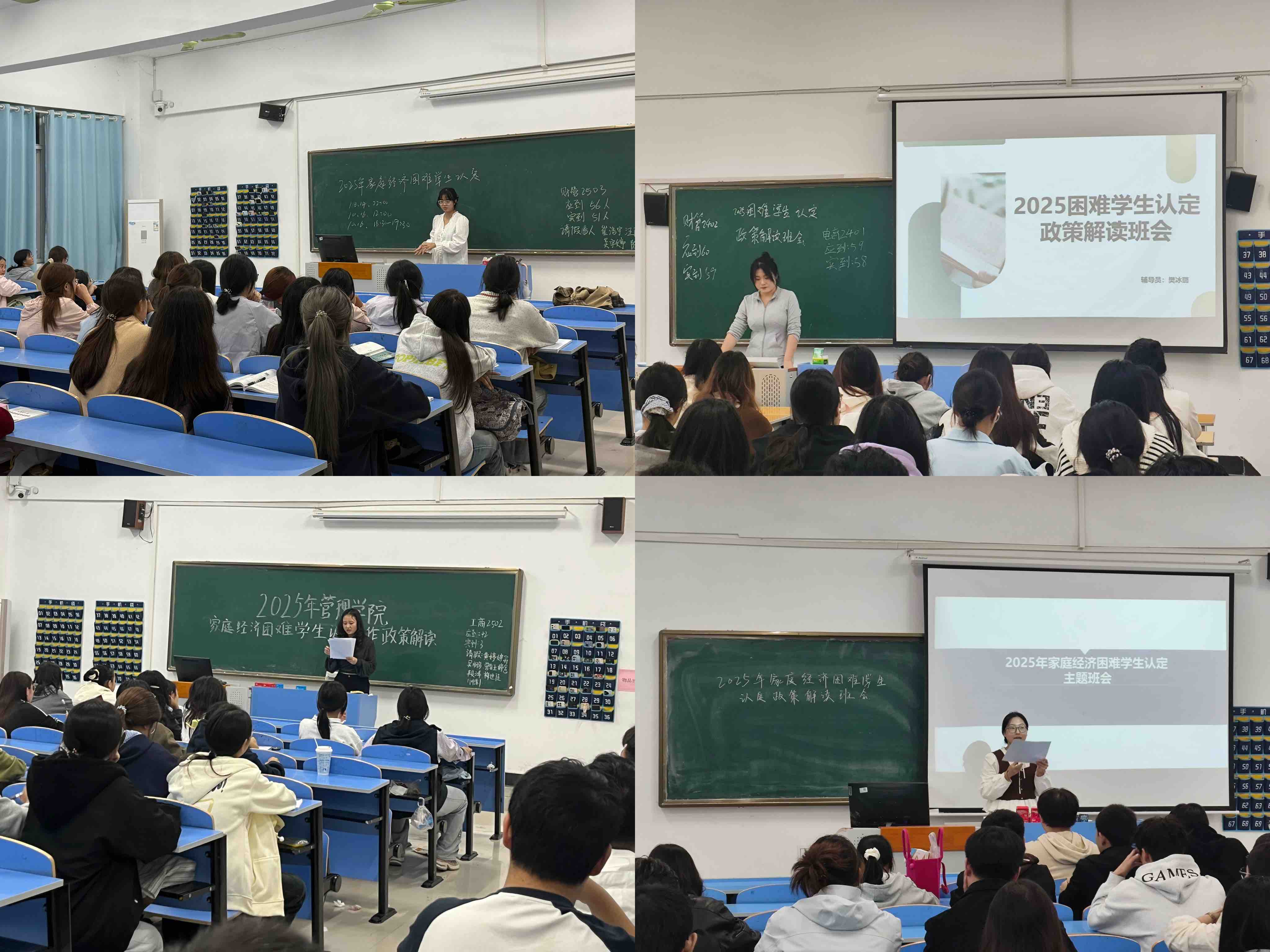 本网讯(通讯员:吴佳音)为切实把高校资助关怀落到实处,精准对接家庭经济困难学生需求,确保认定工作公平、公正、公开开展。管理学院组织全体辅导员于10月13日-15日深入各班级,以“面对面”的方式召开2025-2026学年家庭经济困难学生认定政策解读主题班会,将政策红利与学院温暖精准传递给每一位学生。