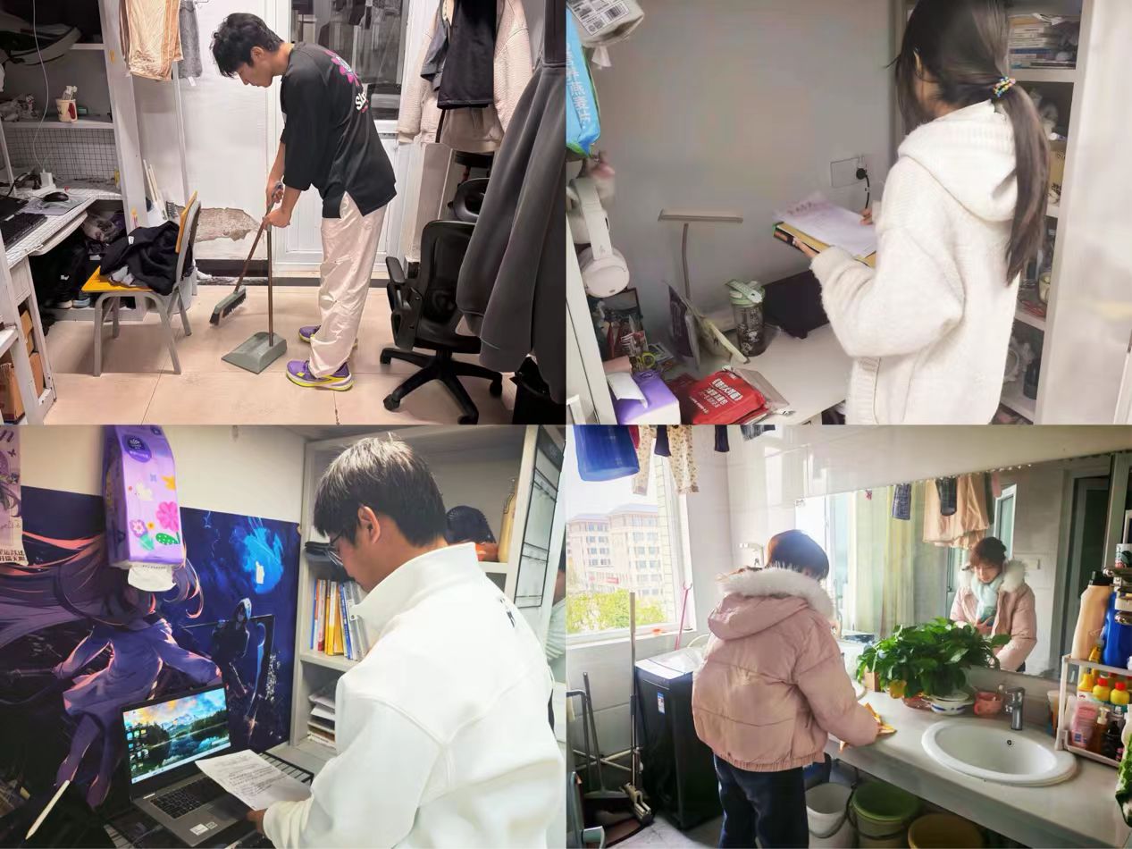 活动现场,同学们干劲十足,充分展现出高涨的劳动热情与良好的协作精神。大家合理分工、默契配合,对个人书桌、地面、卫生间、洗漱台等区域进行全面细致的清扫整理。清洁过程中,同学们不仅认真擦拭污渍、清扫垃圾,还相互交流收纳技巧,分享整理心得,现场氛围热烈融洽。许多寝室在完成基础清扫后,还主动添置绿植、规整书架、统一物品摆放,将宿舍布置得既整洁又温馨,尽显良好的自律意识与审美情趣。活动同时,学院辅导员深入学生寝室,实地查看卫生清洁情况,对同学们的认真态度和协作精神给予充分肯定,鼓励大家将劳动习惯融入日常,持续维护宿舍整洁环境,共同营造温馨向上的“寝室小家”氛围。
