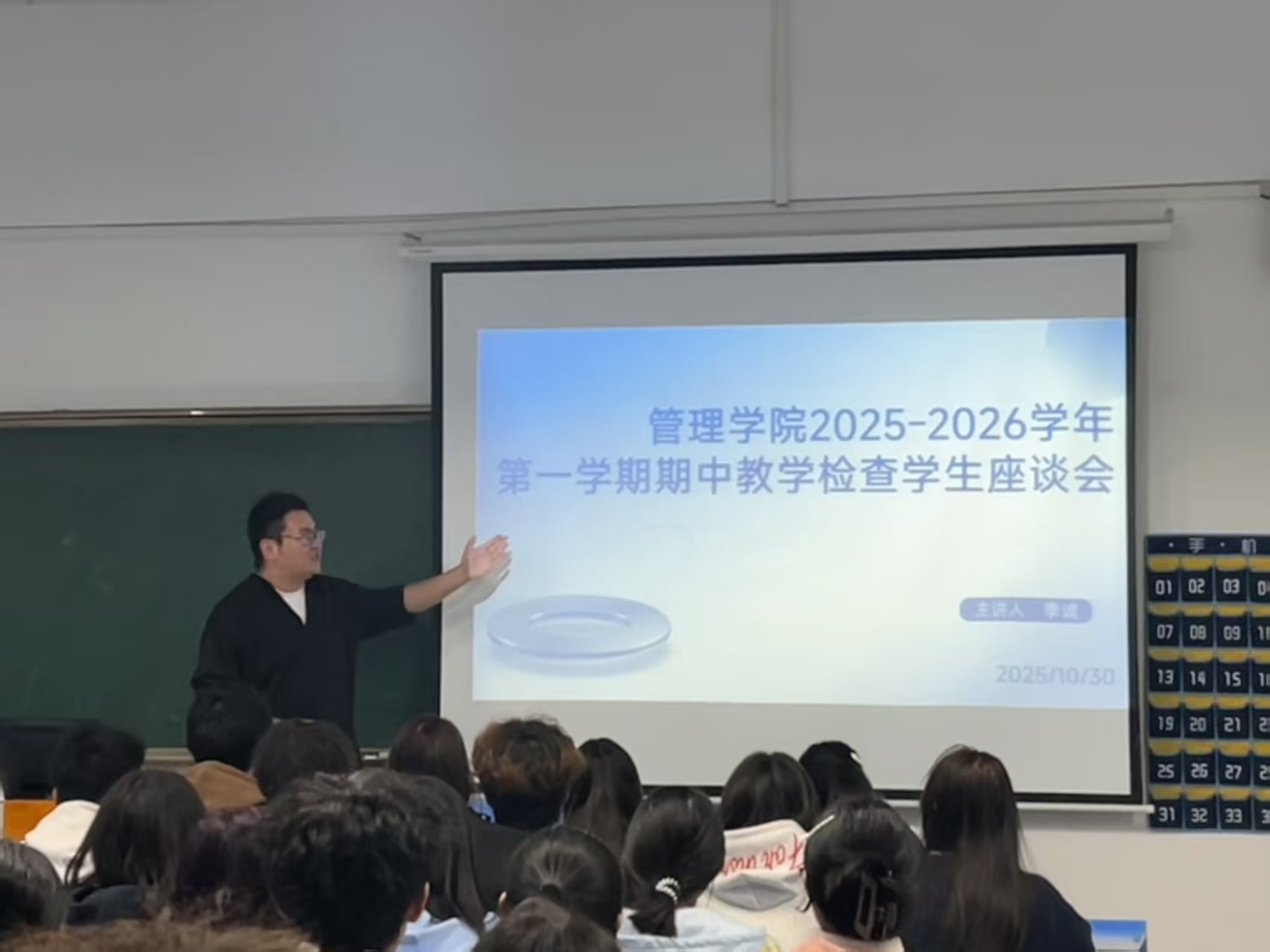 本网讯(通讯员:孙熙妍)为精准诊断教学问题,提升育人实效,管理学院于10月30日晚在6407教室召开期中教学检查学生座谈会。会议由学院团总支书记季诚老师主持,各班级学生代表参会。