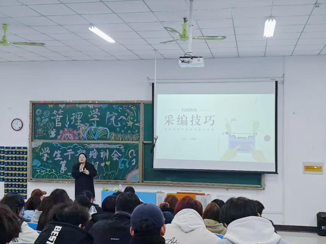 本次培训会将理论结合实践,不仅让学生干部掌握了新闻稿写作中的实用技能,更有效解决了撰写中的常见难点。这既为学院宣传工作的规范开展与内容质量的提升打下了坚实基础,也切实增强了学生干部的文稿撰写能力,助力打造更优质的校园传播矩阵。管理学院将继续聚焦学生干部技能培训,推出更多元的培训活动,为学生干部工作的创新发展持续赋能。