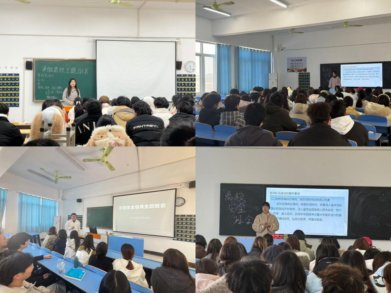本网讯(通讯员:赵东宇)为切实筑牢期末校园安全防线,强化学生安全责任意识,保障学生顺利开启假期生活,近日,管理学院各辅导员分别为所带班级召开期末安全教育主题班会。