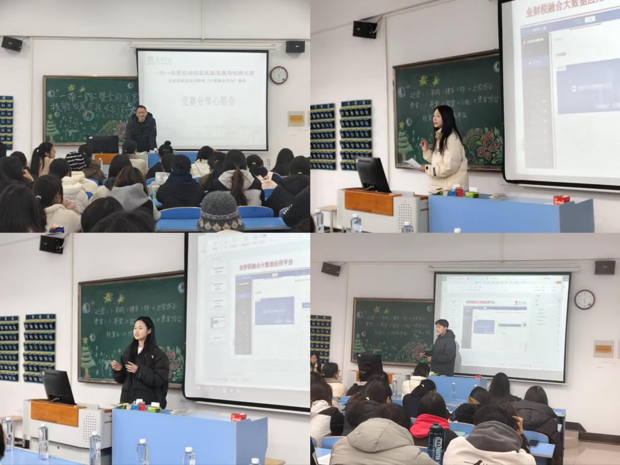本网讯(通讯员:邱衍众)为分享竞赛经验,点燃学生竞赛热情。管理学院于12月25日在6408教室举行了“一带一路”暨金砖国家技能发展与技术创新大赛(业财数据应用与管理赛道)心得分享会。本次分享心得会由学院副院长徐晓晗主持,会计教研室全体科任老师参加,夏梦琪、叶佳、王世凯三位获奖学生向参与本次会议的同学进行分享。