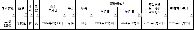 经过党支部对预备党员1年的培养教育和考察,经支部委员会研究确定,支部大会讨论决定,拟确定陈坭胤1名同志预备党员转正,特在全院范围内进行公示。公示时间为2025年12月1日至2025年12月7日(7天)。