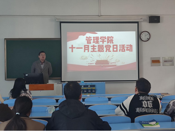 本网讯 秋色已暮,新冬将至。管理学院学生第一、二党支部于2023年11月20日在教学楼6405开展十一月主题党日活动,管理学院学工党员教师及全体学生党员参加了此次会议。