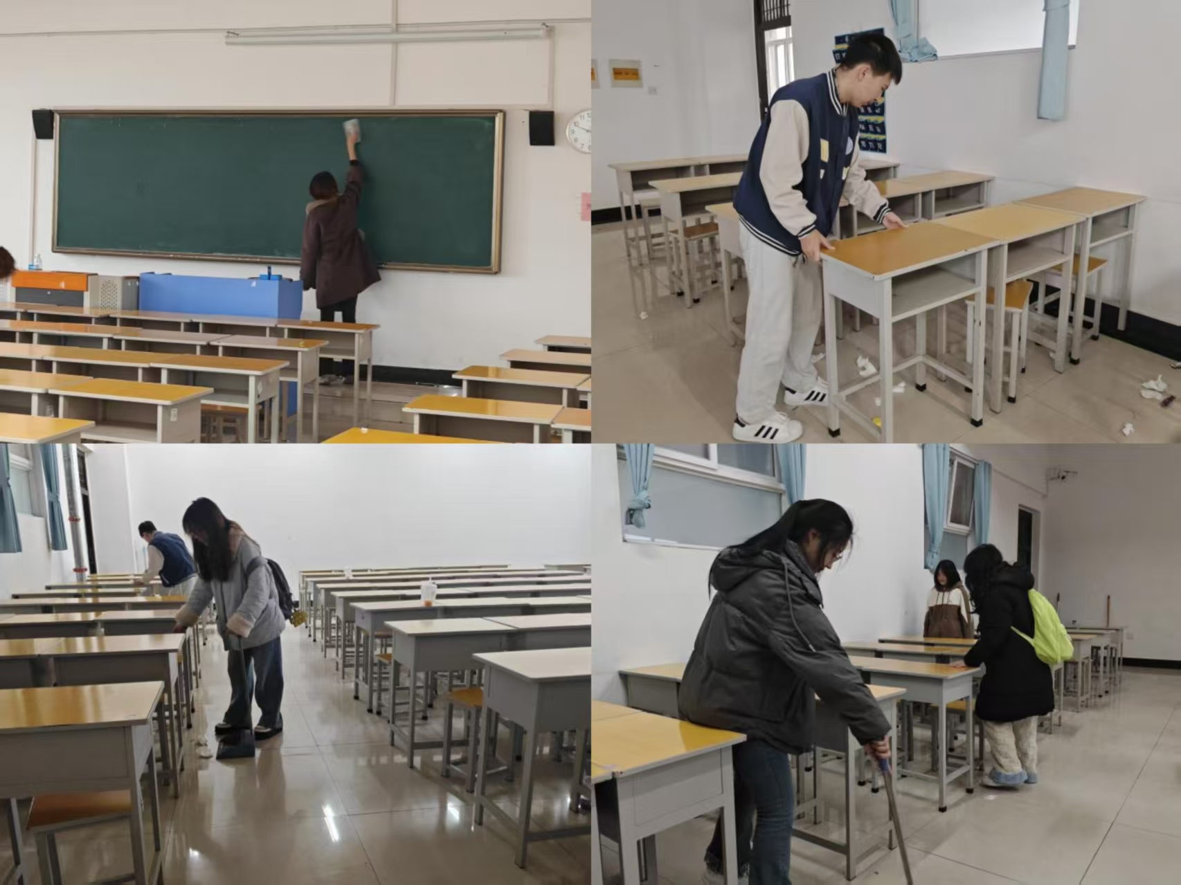 同学们积极参与到六栋教学楼的清扫活动中,认真热情、井然有序。在大家的共同努力下,一间间教室很快就变得干净整洁。于忙碌中,大家感受着劳动的乐趣与成果的喜悦,同时也更加珍惜通过这努力换来的整洁的学习环境。