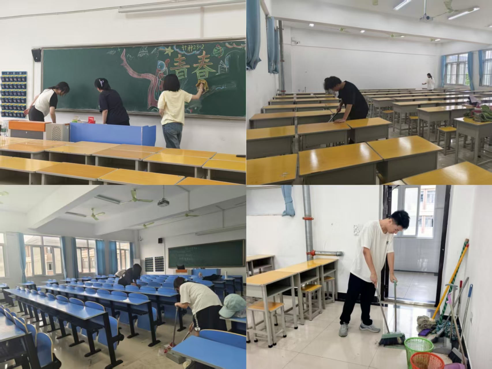 在六栋教学楼下,同学们迅速集合,听从负责人的安排,有条不紊地分成若干小组,开始了洁校工作。