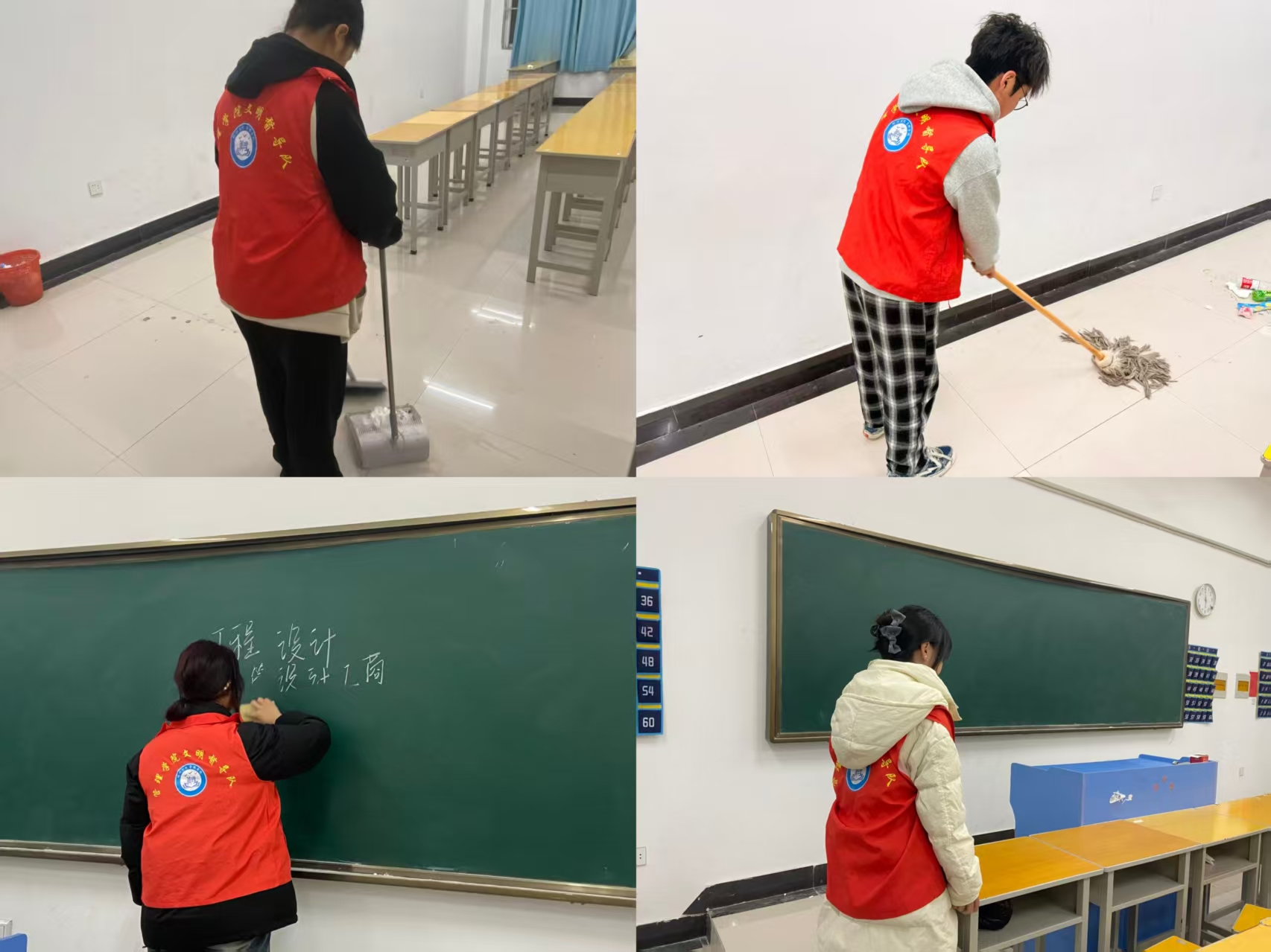 活动伊始,参与洁校活动的同学准时在六栋教学楼前完成集结。在负责人进行简短的任务分配后,各小组迅速抵达责任区域投入工作。教室内,同学们各司其职,清扫地面、擦拭黑板、整理公共设施,整个过程快速且有条不紊。在全体志愿者的共同努力下,教学楼相关区域的环境卫生得到显著改善,活动在高效务实的氛围中圆满结束,充分体现了同学们的责任与担当。
