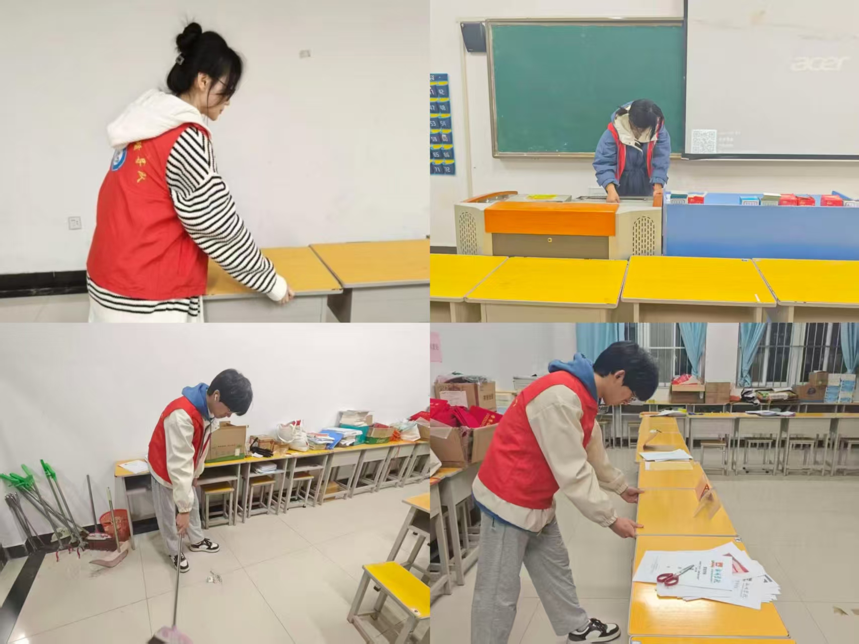 活动伊始,志愿者们准时在六栋教学楼前集结。负责人给大家明确清洁标准同学们迅速投入清扫工作整个清扫过程,同学们相互配合、各司其职,经过同学们的打扫,六栋教学楼的教室、走廊等公共区域环境卫生得到显著改善,呈现出整洁有序的面貌。