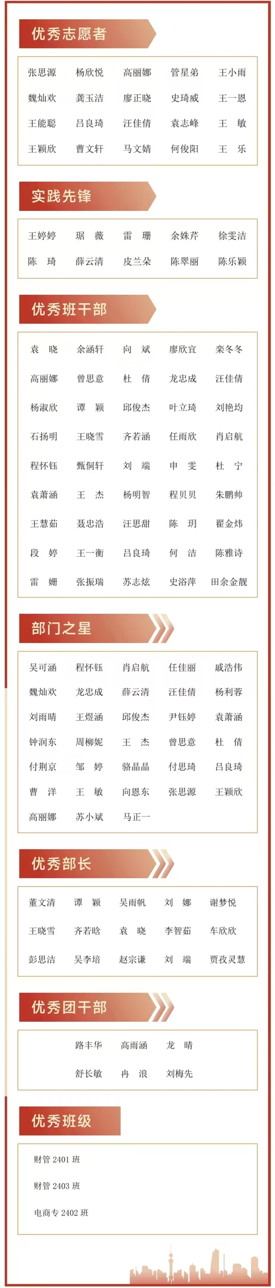 管理学院2024-2025学年优秀学生干部、先进班集体的评选结果公示