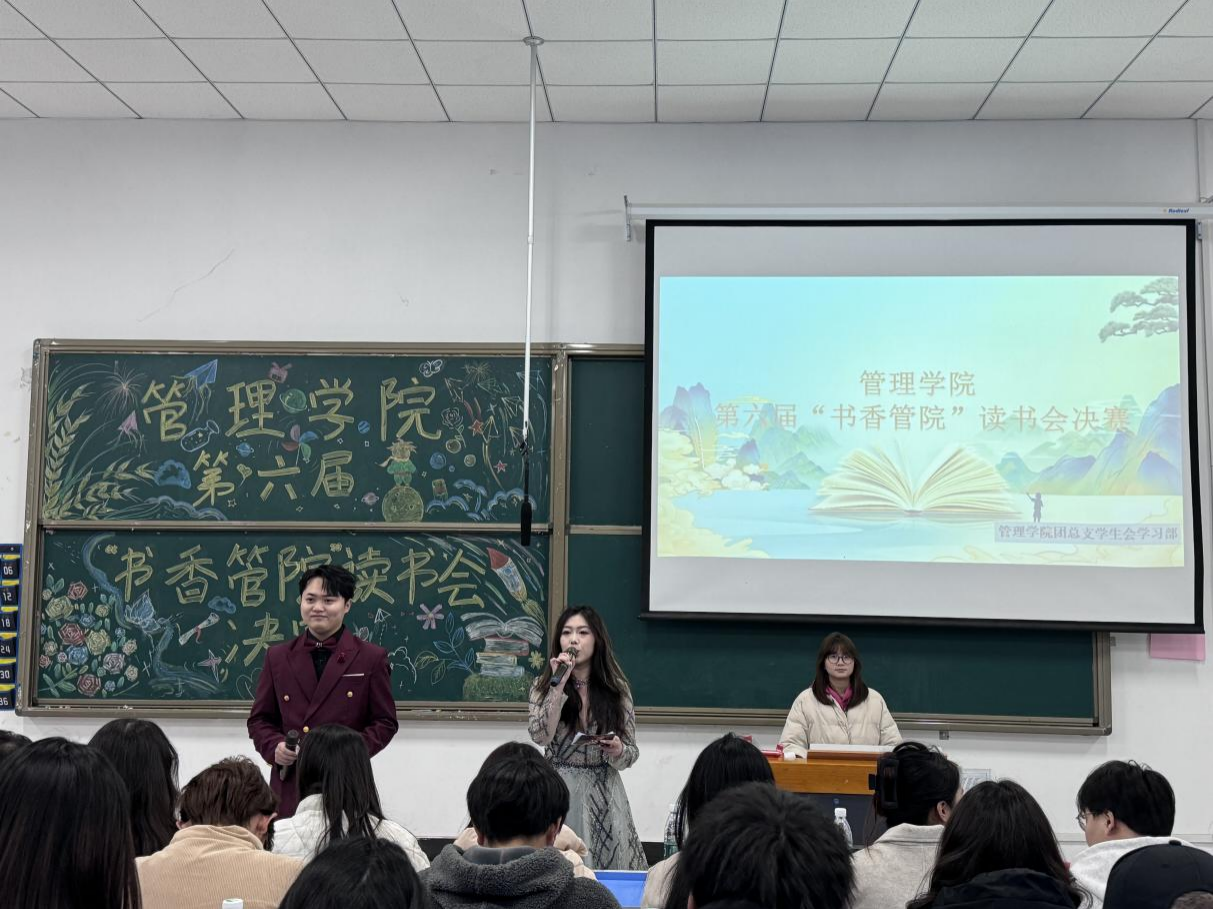 本网讯(通讯员:向恩东)胸藏文墨怀若谷,腹有诗书气自华。为进一步倡导读书风尚,营造“爱读书,善读书,读好书”的浓厚学习氛围,点燃同学们对读书的热爱,丰富校园文化生活,管理学院于11月27日18:30在5405教室举办第六届“书香管院”读书会决赛。