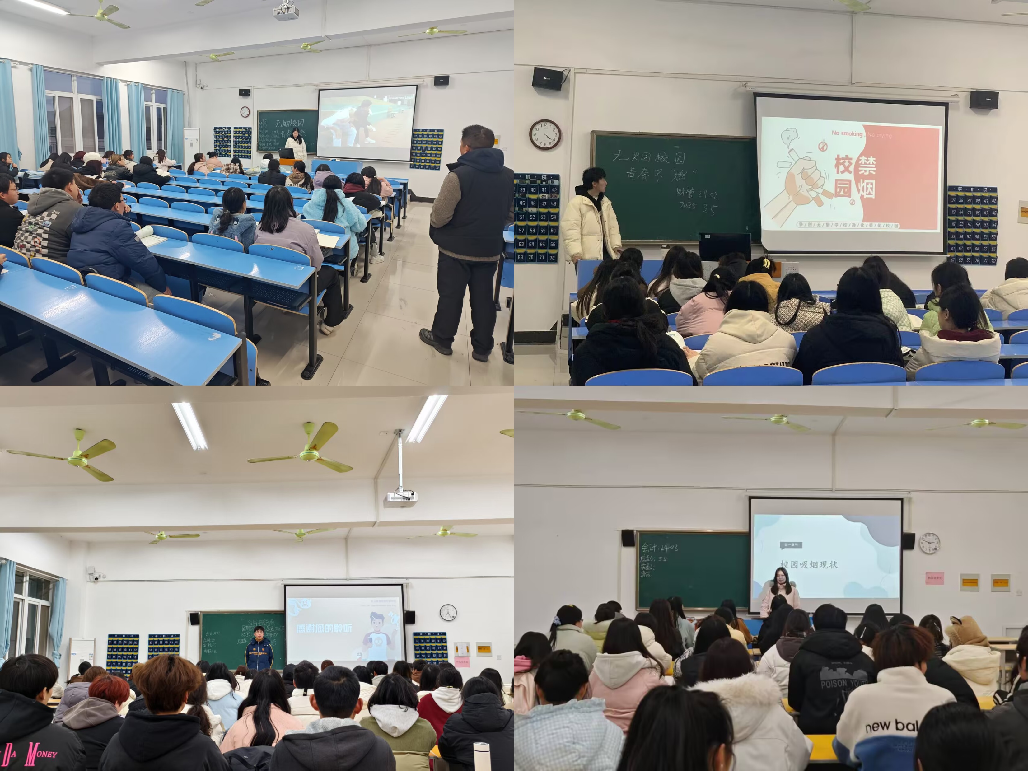 班会伊始,班委们通过播放禁烟宣传片,展示详细的数据和鲜活的真实案例,为同学们讲解了烟草的成分、吸烟对身体的危害以及二手烟的影响,提升了同学们对吸烟危害的认识。除了对知识的讲解,各班还组织了丰富多彩的互动环节。有的班级对“身边的吸烟现象及应对方法”展开了热烈讨论,有同学提到,在校园偶尔能看到随地丢弃的烟头,影响了校园美观;有的班级开展了禁烟知识竞赛,同学们踊跃参加,在激烈的抢答中加深了对禁烟知识的理解。最后,全体同学共同签署了“无烟校园,青春不燃”承诺书,承诺从自身做起,拒绝吸烟,并向身边人宣传吸烟危害,为创建无烟校园贡献力量。