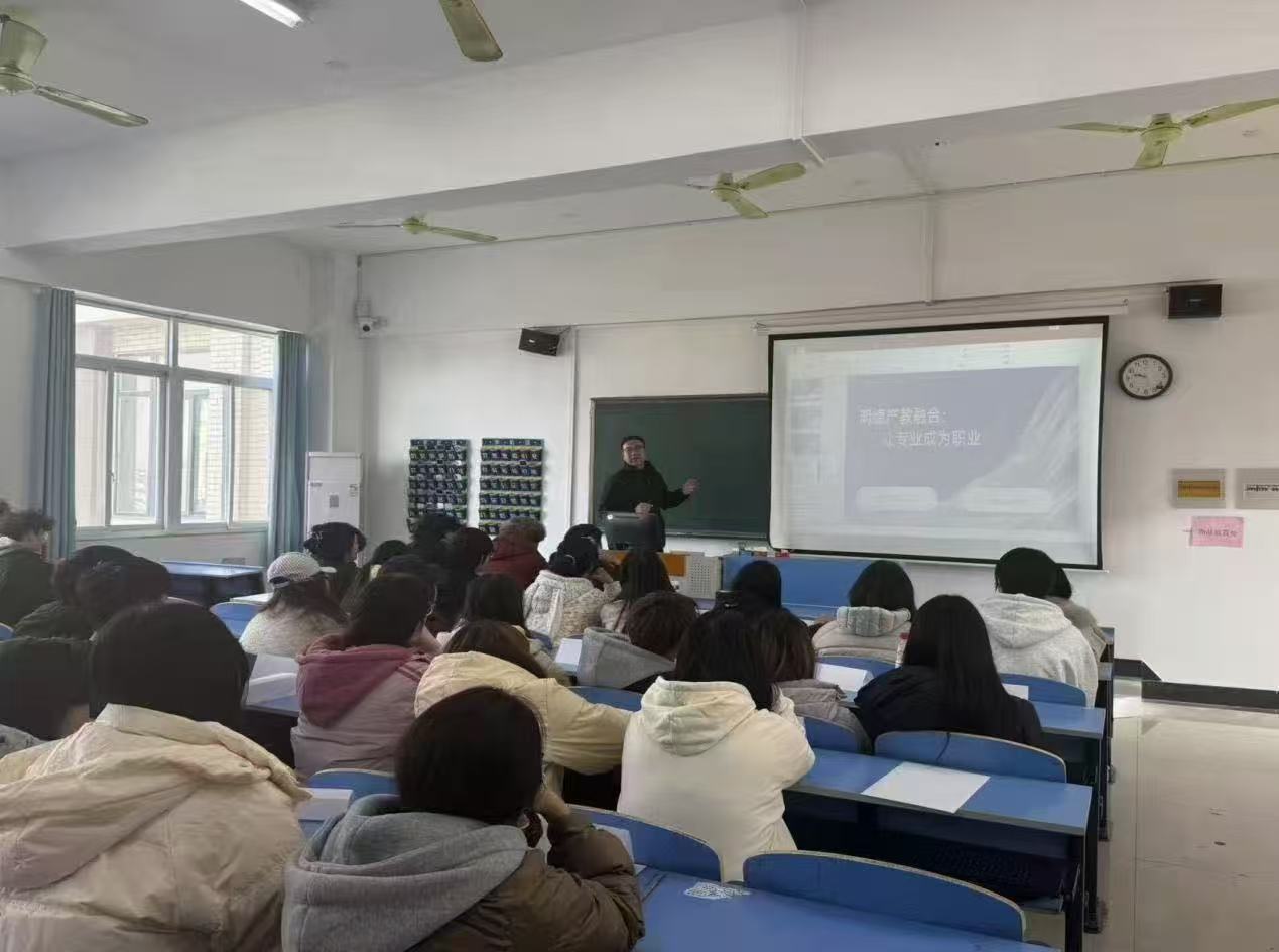 随后,明德产教融合公司总经理王勇开展专题宣讲,系统介绍了集团的校企合作背景、资源优势与保障体系。据介绍,集团已签约210余家行业领先企业,可提供20000+优质实习岗位,覆盖多个专业领域,为学生搭建起多元化实训平台。宣讲中,王总分享的往届实习生成长故事鲜活有说服力:有会计专业同学实习期间表现亮眼,凭借扎实能力提前转正,月薪达8500元,还有传媒专业同学入职仅三个月便快速成长、脱颖而出,成功晋升教学主管,享有月薪9000元加绩效奖励的薪资福利,让在场学生直观感受到实训带来的实际收获与发展潜力。同时,他明确表示集团将与学生、企业签订三方协议,在岗位安排、薪资标准等方面明确各方权益,切实打消学生对实习“缺保障、学不到东西”的顾虑,为学生实习实践保驾护航。