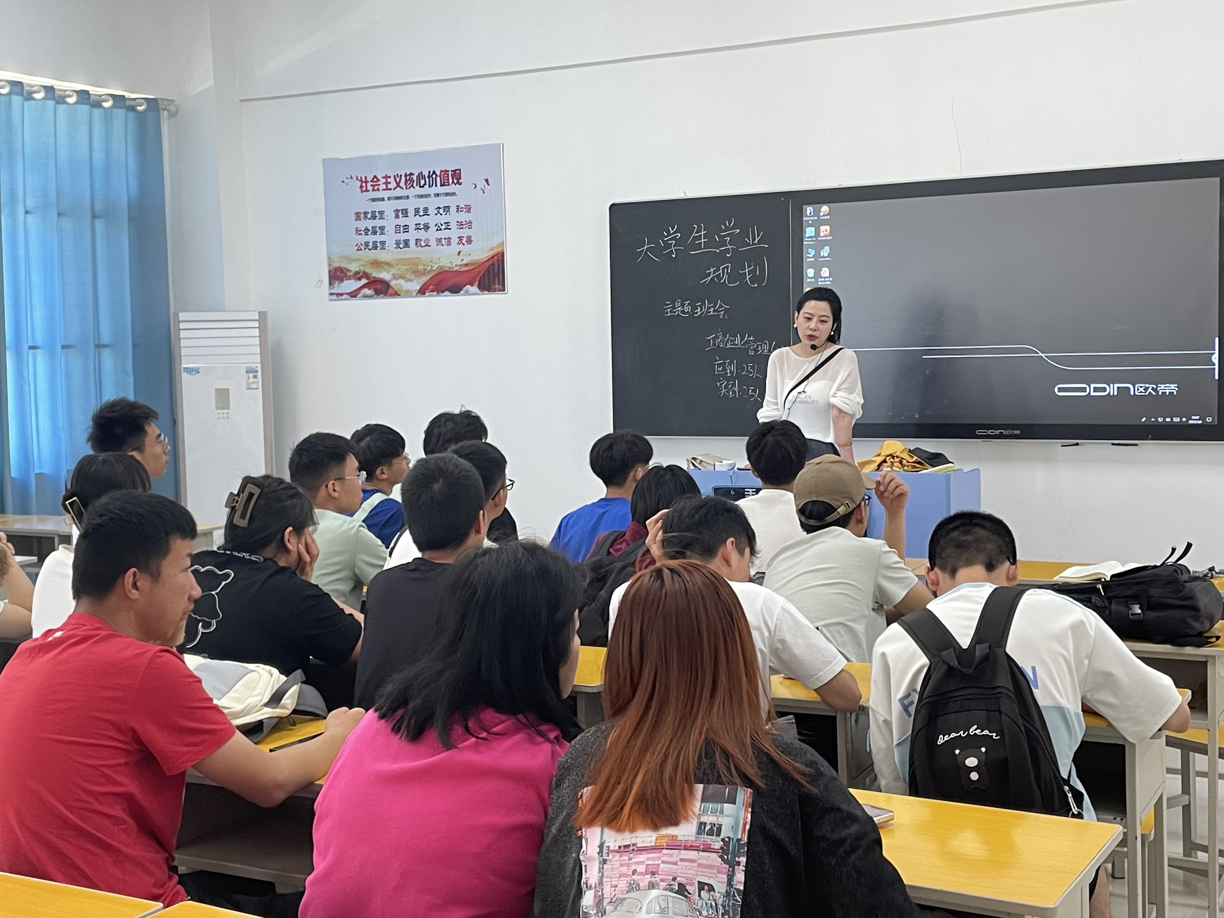 本网讯 (通讯员 于炫)为帮助学生树立正确的学习理念,使学生依据自身兴趣爱好和专业知识技能对未来进行规划,做自己的人生主人,管理学院近期组织各2021级班级开展“大学学业规划”主题班会。班会由管理学院各班教师党员组织召开。