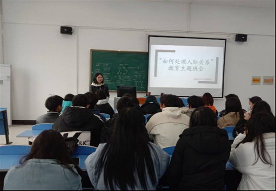 班会伊始,各班教师党员对此次班会主题进行介绍,副院长徐晓晗指导同学们对人际交往应有正确认识,告诉同学们,在每个人的生活和学习中,人际交往是一项最基本的能力。踏入大学,会遇到各种人际关系,师生之间、同学之间、同乡之间以及个人与班级、学校之间的关系等等。因此,提高自己的人际交往能力很重要,拥有一个良好的人际关系也是生存与发展的必要条件。