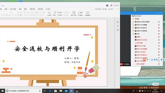 主题班会上,各位辅导员精心准备,吃透政策,认真组织,带领学生全面深入学习了《关于印发高等学校、中小学校和托幼机构秋冬季新冠肺炎疫情防控技术方案的通知》(疾控函﹝2020﹞668号)、湖北省教育厅《关于做好2020年秋季高校开学有关工作的提示》、《长江大学工程技术学院2020年秋季开学实施方案》等文件,指导学生做好返校前的各项准备,重点强调了返校时间节点及相关注意事项,要求学生未接到返校通知时,不得提前返校,按照学生报到实行“申请—报告”制返校原则。辅导员们对暂缓返校的同学认真梳理,逐一电话、网络联系告知。对返校前的准备工作、返校途中注意事项、返校报到事宜、返校后安排等进行重点讲解。辅导员老师还进行了疫情防控知识宣传教育,要求学生养成良好的生活习惯,教育学生不传谣、不信谣、不造谣,自觉传播正能量,并在线解答了学生提出的各种疑问;重点强调不在此次返校安排里的学生,一律不许进入校园并依校规予以严肃处理。