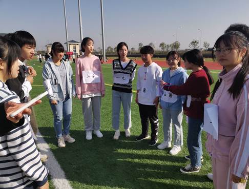 学生分为篮、紫、粉、黄、红五支队伍,此次活动一共有三元五角、二人三足和板砖接力三个游戏。 第一项活动三元五角最为热闹,需每组派出十人参赛,参赛者围成圆圈,沿逆时针方向慢走,当主持人报钱数时,参与者立即与临近的人抱团,在规定的时间内每个人身上对应的钱数叠加与主持人报的钱数相同时视为抱团成功。主持人一声令下,参与者迅速就近抱团,经过快速运算,钱数不足的队伍急忙从别的队伍中拉人,钱数超出的队伍也在激烈地讨论,现场热闹至极。