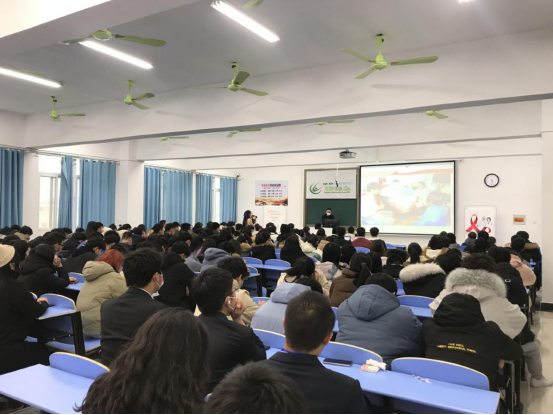 下午4:00,艾滋病知识讲座如期举行,荆州胸科医院的两位医师为本次主讲,参与本次讲座的有心育部及青春健康同伴社干事及各分院慕名而来的同学们。讲座开始前,工作人员为进场学生分发口罩和红丝带。讲座主要围绕“什么是艾滋病”“艾滋病相关历史事件”等多方面展开,让同学们系统全面地了解到艾滋病的发展史以及预防措施。随后,医师为我们讲解了新冠肺炎感染的相关症状及预防措施,发放宣传手册和小礼品并向大家展示了有关艾滋病歧视的实例,呼吁大家关爱艾滋病患者。