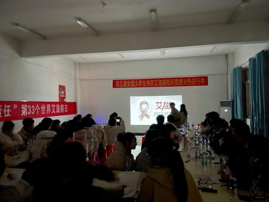 晚上8:00在教学楼1502举行“携手防疫抗艾,共担健康责任”主题同伴教育,来自青春健康同伴社的罗映祥担任本次同伴教育主持人,各分院同学积极参与本次同伴教育活动。首先主持人罗映祥通过“艾滋病快速联想”游戏,让同学们在白纸上写下自己对艾滋病的了解,并向同学们介绍了艾滋病的基本状况和危害影响并向大家科普了艾滋病的传播途径,以图文并茂的形式详细展示了艾滋病感染后经历的四个时期,同学们在此环节能够感同身受到艾滋病患者的那种无奈与艰辛。本次同伴教育还进行了一个十个同学参与的火游戏角色扮演,呼吁多多关爱艾滋病人。游戏不仅将活动氛围推向高潮,还让同学们深刻认识到关爱艾滋病患者的重要意义。