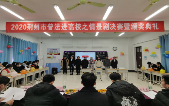 本网讯 (通讯员 周敏菲 聂秋英 孙阳洋 孙凯杰)为提高同学们的法律意识,营造良好的法律氛围,构建和谐校园,推动我院大学生关注普法工作和普法志愿队伍的建设,荆州市普法进高校之情景剧决赛暨颁奖典礼于12月4日在我院太湖校区2204教室举办。本次荆州市“普法进高校”活动由共青团荆州市委员会、荆州市司法局主办,共青团长江大学工程技术学院委员会承办,长江大学工程技术学院青年志愿者服务总队协办。出席本次比赛的评委有荆州市司法局科长韩明权、团市委青年志愿者行动促进中心负责人颜创、院团委书记邹发伟、院团委老师陈仁圣、青年志愿者服务总队队长郑昊昊。陈万里和刘欣怡担任本次比赛主持人。