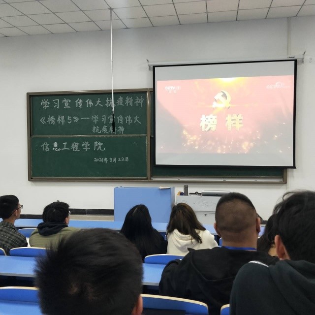 本网讯(通讯员 段世骏)信息工程学院团总支学生会于3月22日晚上8点,组织全体学生干部在3405教室观看《榜样5》专题节目,共同学习伟大抗疫精神。