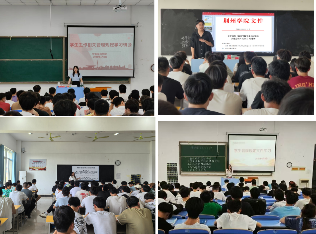 本网讯(通讯员 柯婷)为帮助全院学生深入学习了解校园规章制度,智能制造学院于6月8日晚自习期间召开专题班会,系统学习《WilliamHill中文官方网站学生违纪处分实施办法》、《WilliamHill中文官方网站学生考勤及请假管理规定》、《WilliamHill中文官方网站学生纪律处分解除规定》、《WilliamHill中文官方网站考试违规处理办法》、《WilliamHill中文官方网站学生管理规定》核心内容。此次班会覆盖全院各班级,由各班辅导员主持,致力于帮助学生全面了解学校的各项管理规定,为大学生活奠定坚实的基础。