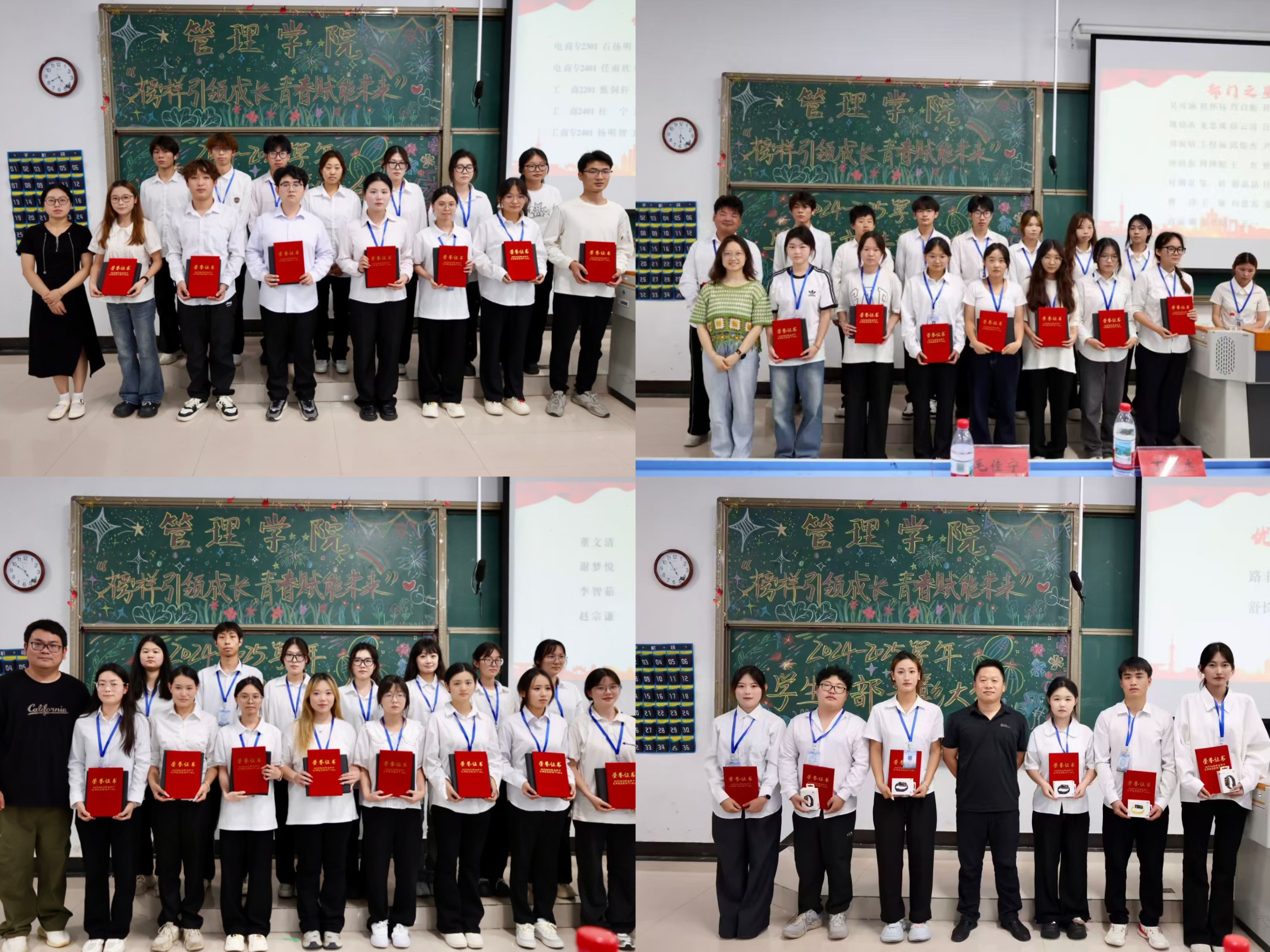 本网讯(通讯员:邹婷)青春因奋斗而闪耀,人生因拼搏而精彩。为表彰先进典型,进一步激发学生奋进动力,6月18日下午,管理学院于5105 教室召开2024 - 2025 学年学生干部表彰大会。学院党总支副书记冯尧、团总支书记季诚、学生第一党支部书记关婧瑶、第二党支部书记毛佳宁、辅导员丁楚杰及各学生干部共同参与此次会议。