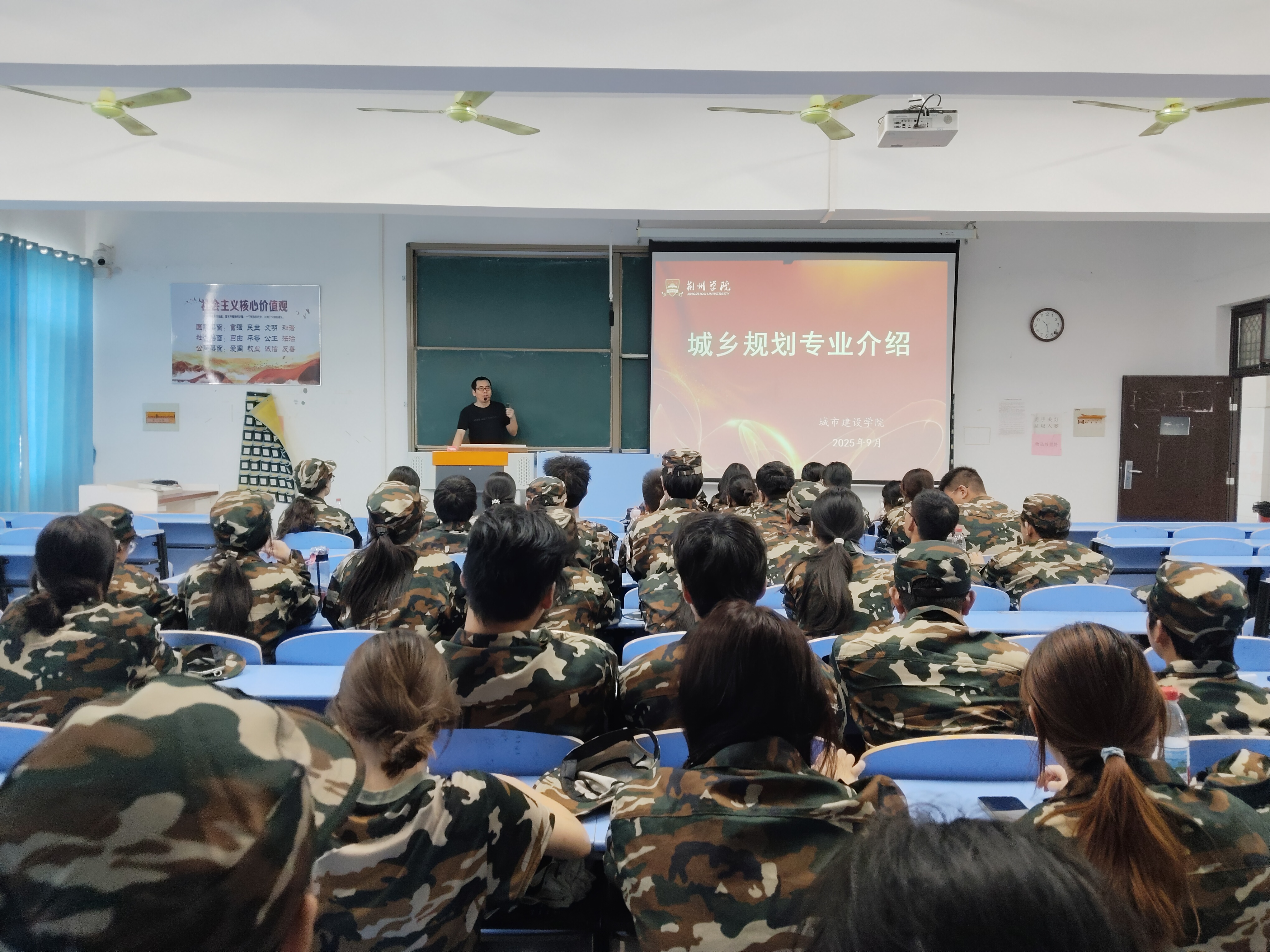 25级城乡规划与园林工程技术专业介绍会于9月18日下午1点在教学楼1301教室举行。城乡规划专业教研室主任魏科丰老师从专业办学条件、专业学习内容、人才培养方案、专业发展前景四个方面进行介绍。他以生动的案例和详实的数据,全面剖析了城乡规划和园林工程技术两个专业的核心课程、实践平台、就业前景及行业趋势。鼓励学生在大学期间自主学习、自主选择,个性化发展,强调理论与实践结合,工程应用能力的培养。
