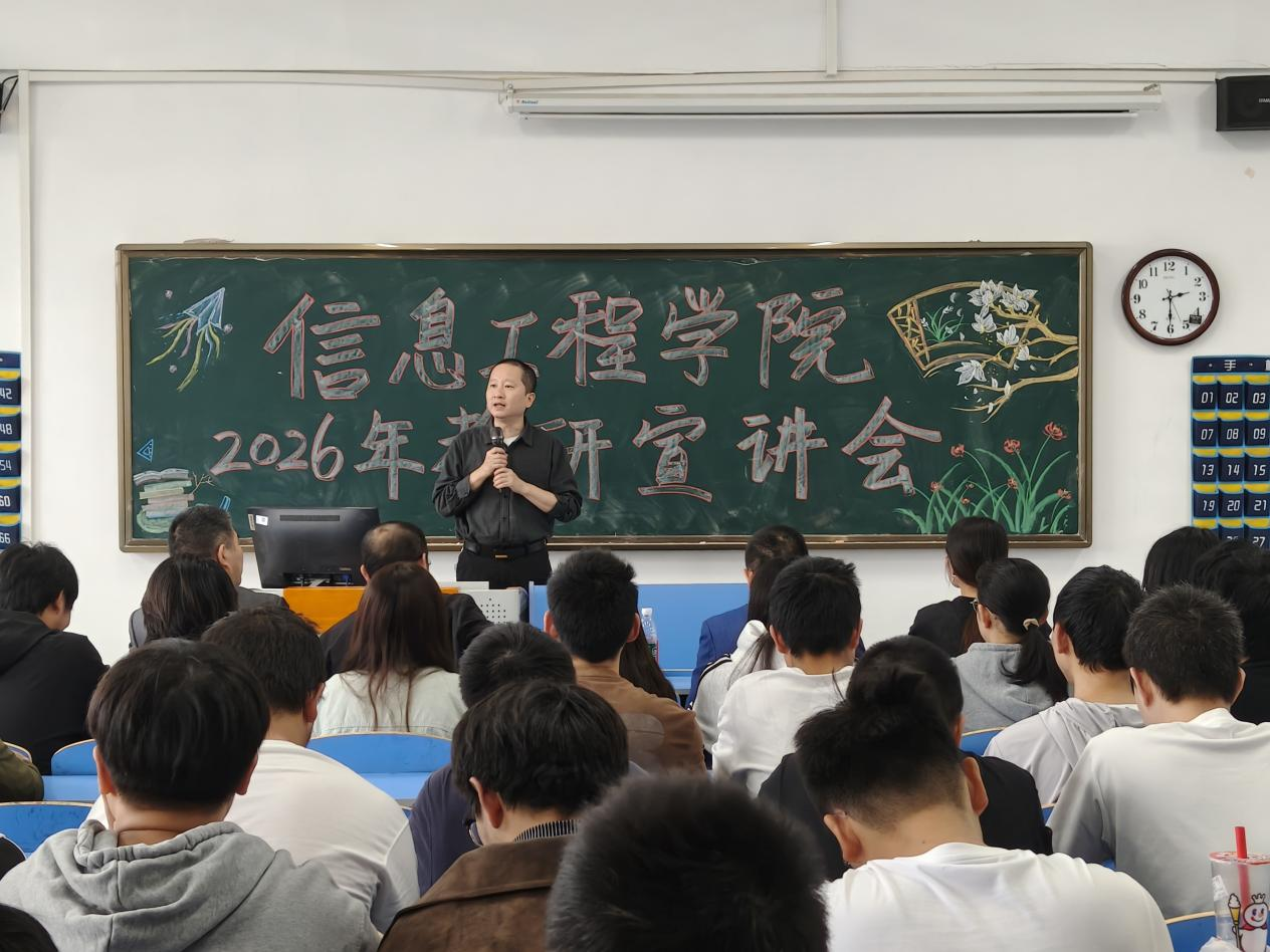 本网讯(通讯员 秦昕)为扎实推进2026届毕业生考研指导工作,信息工程学院坚持早谋划、早部署、早行动,近期精心组织开展了多场形式多样、内容丰富的考研宣讲与报名指导活动,全面助力学生科学规划复习路径、精准选择报考院校,营造了浓厚的考研氛围。