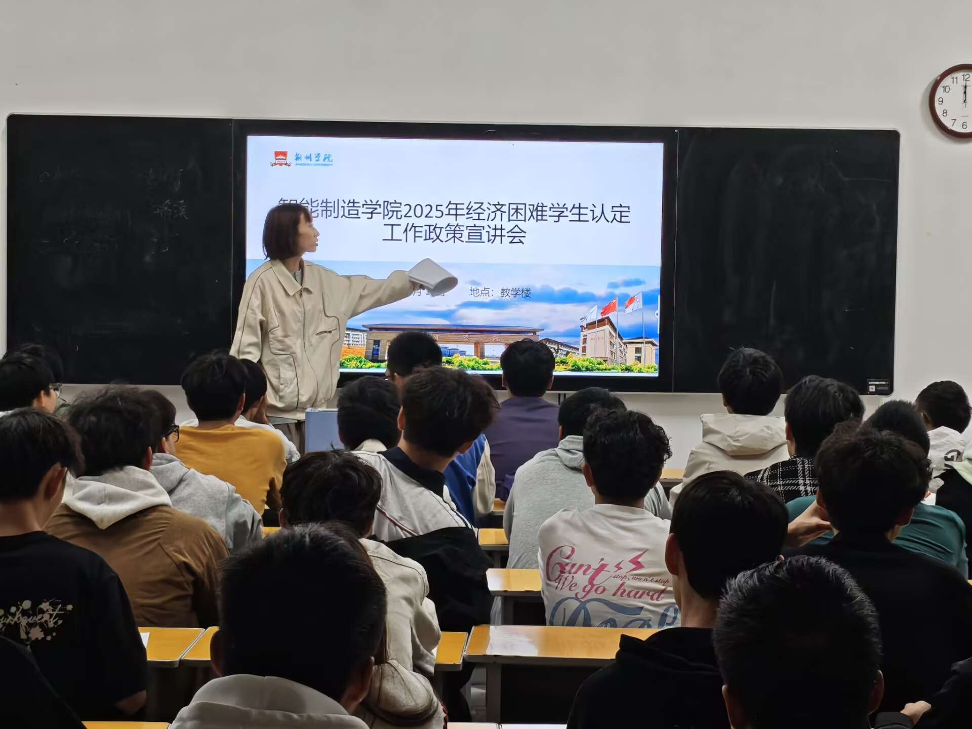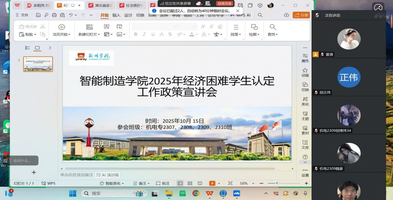 本网讯(通讯员 晏学渊)为确保国家资助政策精准落实,帮助家庭经济困难学生顺利完成学业,10月14日-16日,智能制造学院2025-2026学年贫困生认定工作正式启动。学院高度重视此项工作,积极部署,全面组织各班级召开贫困生认定工作政策宣讲班会,旨在让每一位学生深入了解政策,确保认定过程的公平、公正、公开。