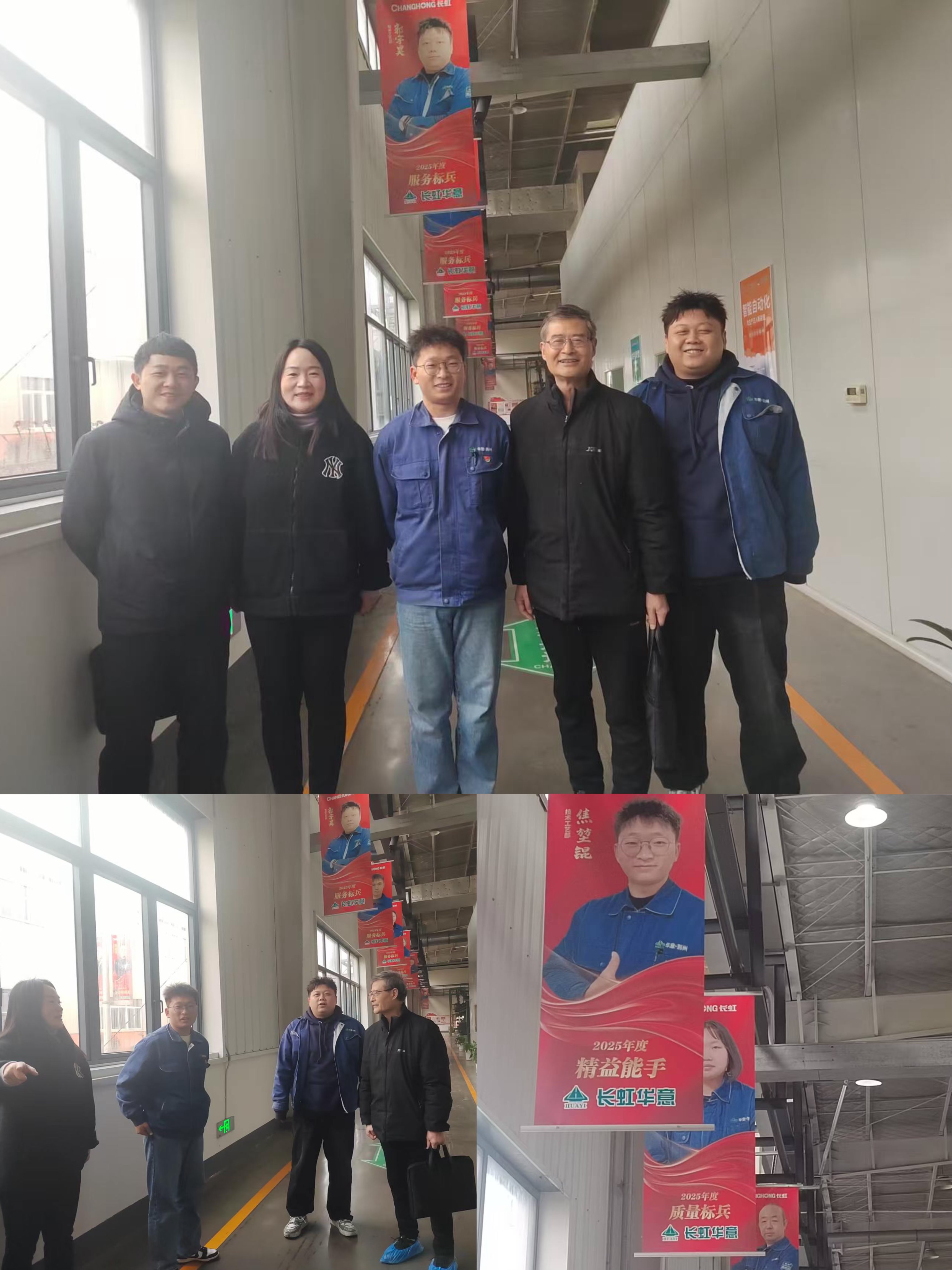 参观期间,眭满仓院长一行与我校优秀毕业生焦堃锟、郭宇昊亲切交流,细致询问岗位工作、技能成长与职业发展情况。得知焦堃锟荣获长虹华意2025年度精益能手,郭宇昊荣获长虹华意2025年度服务标兵,眭满仓院长深感欣慰,对两位同学的优异表现给予高度肯定,并勉励他们深耕岗位、精进技能,欢迎常回母校交流分享。