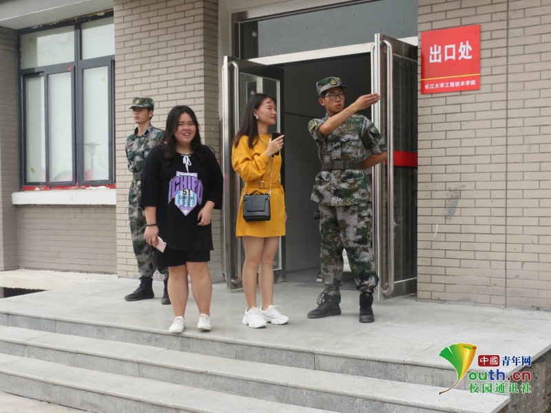 图为长江大学工程技术学院国旗班队员为新生指路。中国青年网通讯员 何维维 摄