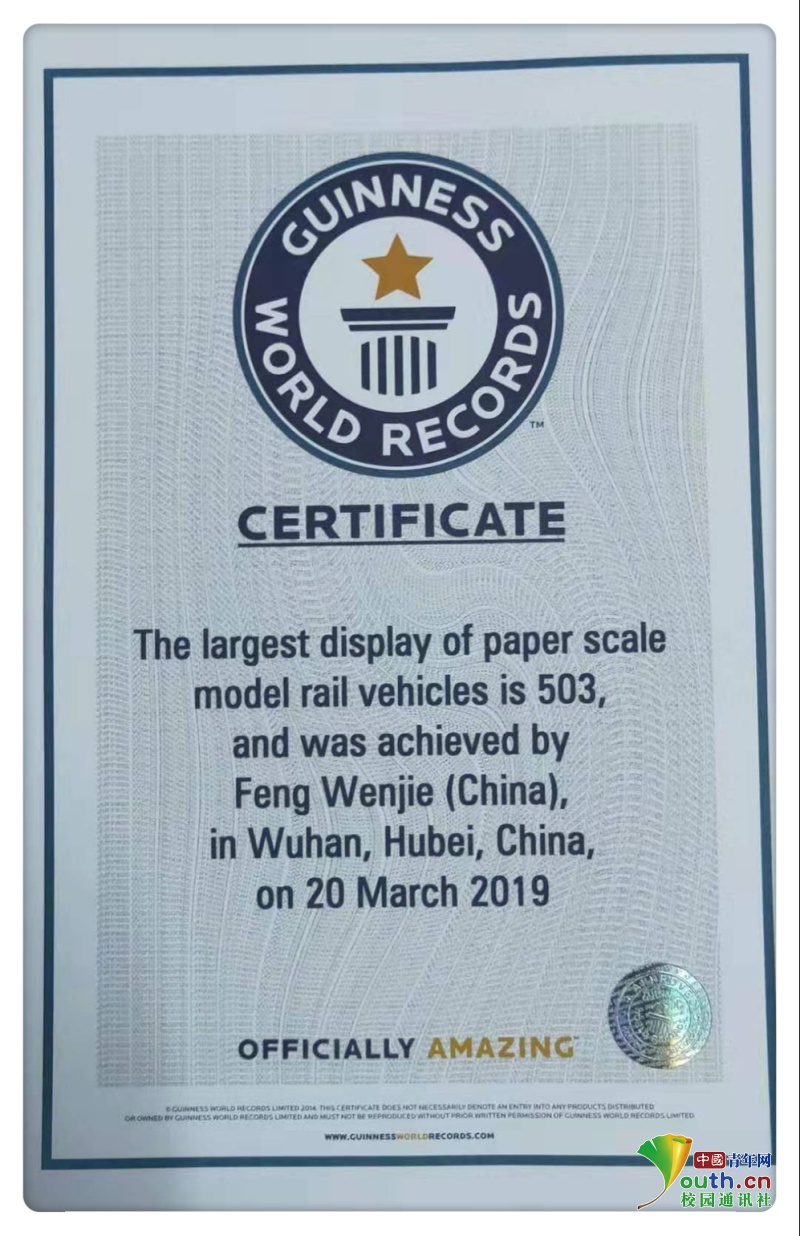 图为吉尼斯纪录证书中国青年网通讯员 丰文杰 提供