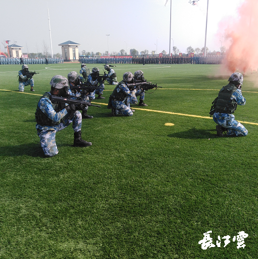伴随着庄严的国歌声,军训观摩会正式开始。同学们身着迷彩服,精神抖擞,迈着整齐的步伐列队入场。捕俘拳、匕首操、军体拳、战术演练、无人机表演、方阵字表演,每一个特色方队表演都展现了同学们昂扬向上、朝气蓬勃的青春风采。