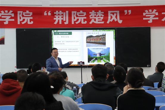 胡兆凌副教授从楚文化的基本内涵、楚文化的精神特质、楚文化的德育价值三个方面进行论述。他分析了楚文化蕴含着“筚路蓝缕”的创业精神、“革故鼎新”的创新精神、“九死未悔”的家国情怀、“海纳百川”的开放精神、“上善若水”的和谐理念这些基本特质。