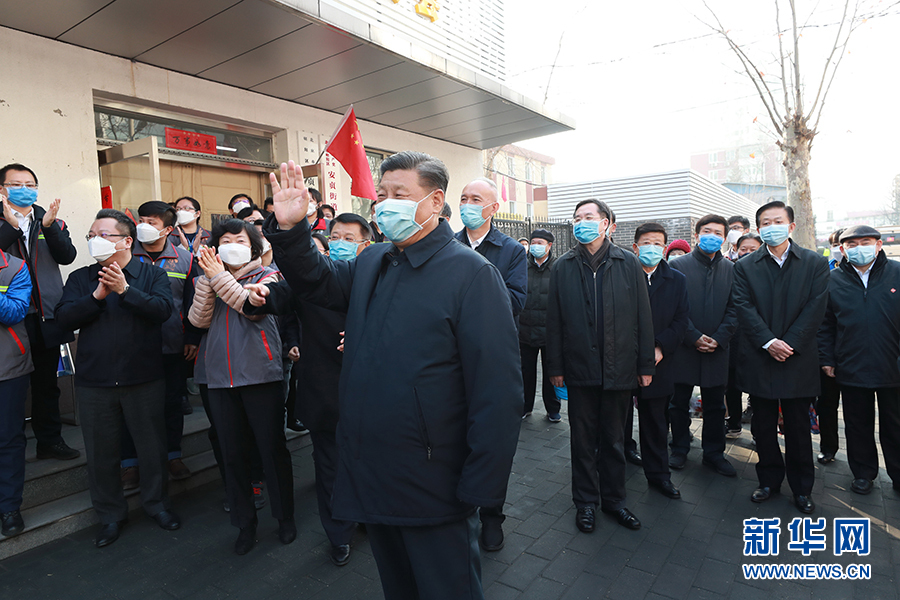 2月10日,中共中央总书记、国家主席、中央军委主席习近平在北京调研指导新冠肺炎疫情防控工作。这是习近平在朝阳区安贞街道安华里社区,了解基层一线疫情联防联控情况。新华社记者 庞兴雷 摄