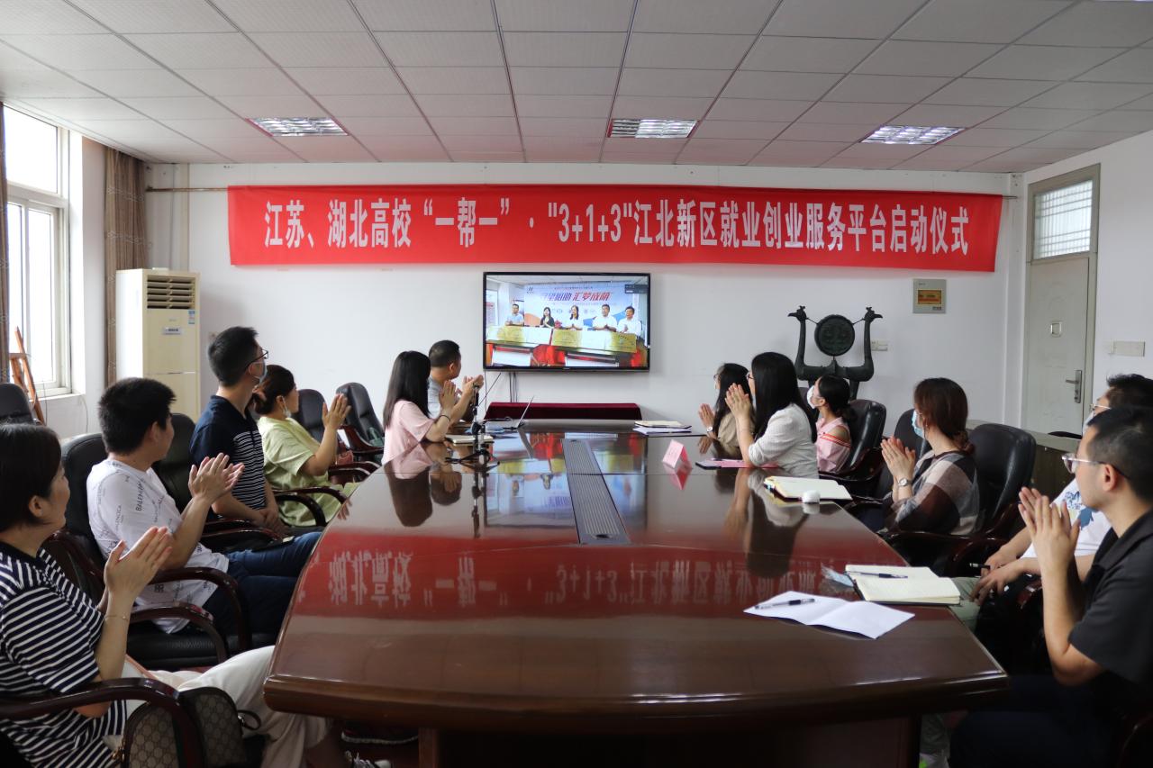 本网讯(记者 黄思琦)为贯彻落实教育部开展的全国高校与湖北高校毕业生就业创业工作“一帮一”行动,多措并举做好高校毕业生就业工作。南京江北新区社会事业局牵头搭建江苏高校“一帮一”湖北高校江北新区就业创业服务平台,于6月8日下午通过视频会议形式开展“江苏、湖北高校‘一帮一’·‘3+1+3’江北新区就业创业服务平台启动仪式”。我院校企合作与就业指导处、大学生创新创业中心相关责任人,以及2020届、2021届辅导员参加会议。会议由南京江北新区社会事业局就业社保办主任张雅婷主持。