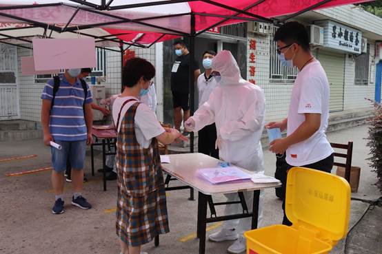 演练分为学生进入校园、入住宿舍、食堂就餐三个环节,由教职工扮演的“毕业生”,按照身份核验、体温测量、卫生消毒等环节模拟学生返校流程,并就外来人员强行闯岗、体温检测异常、食堂就餐异常等突发情况进行应急演练。