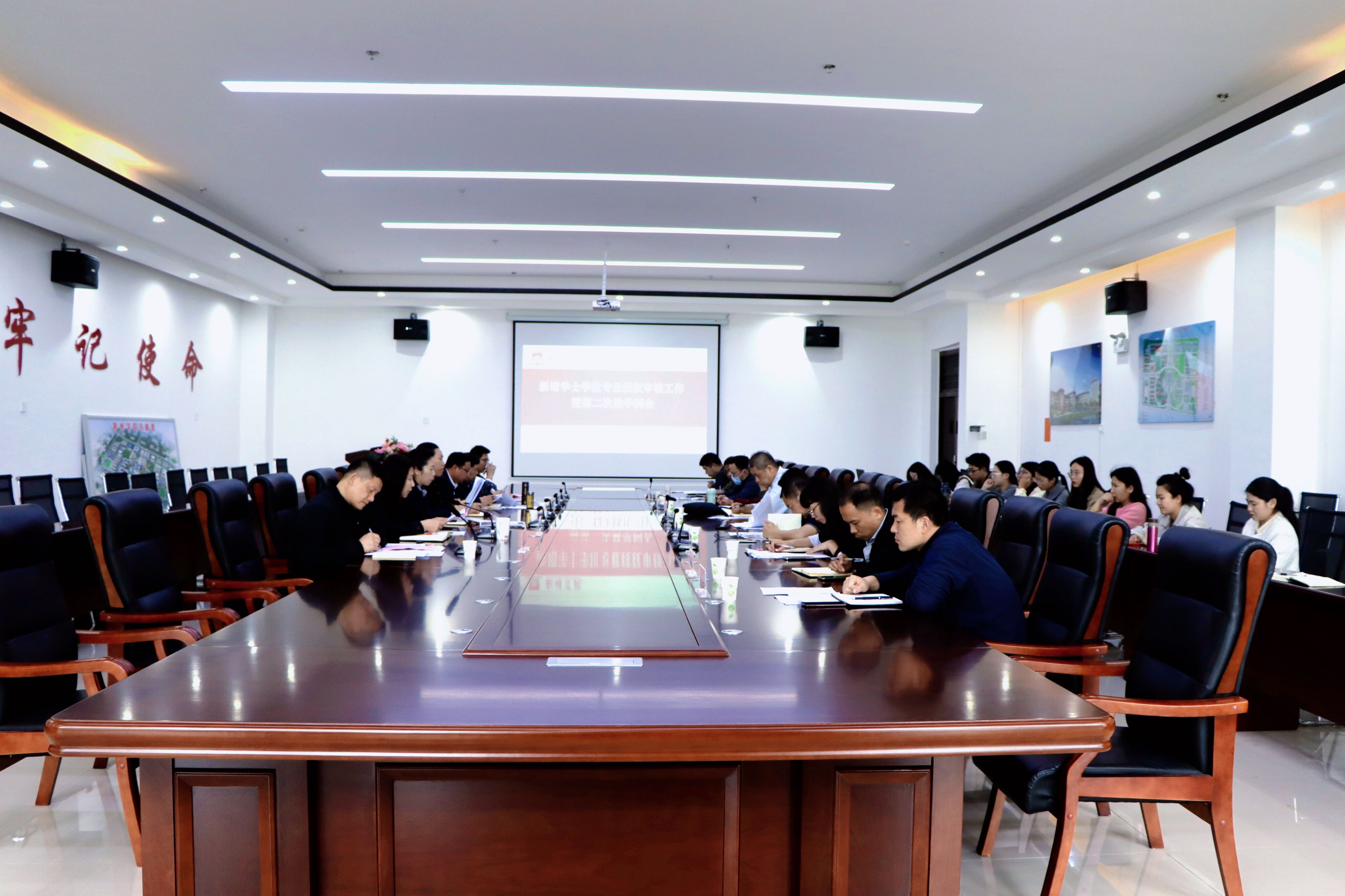 在新增学士学位专业授权审核工作会议阶段,牟海霞解读省学位办《2024年新增学士学位专业授权审核工作的通知》文件,并对相关工作进行部署。二级学院院长就相关专业对标建设情况做了简要汇报。