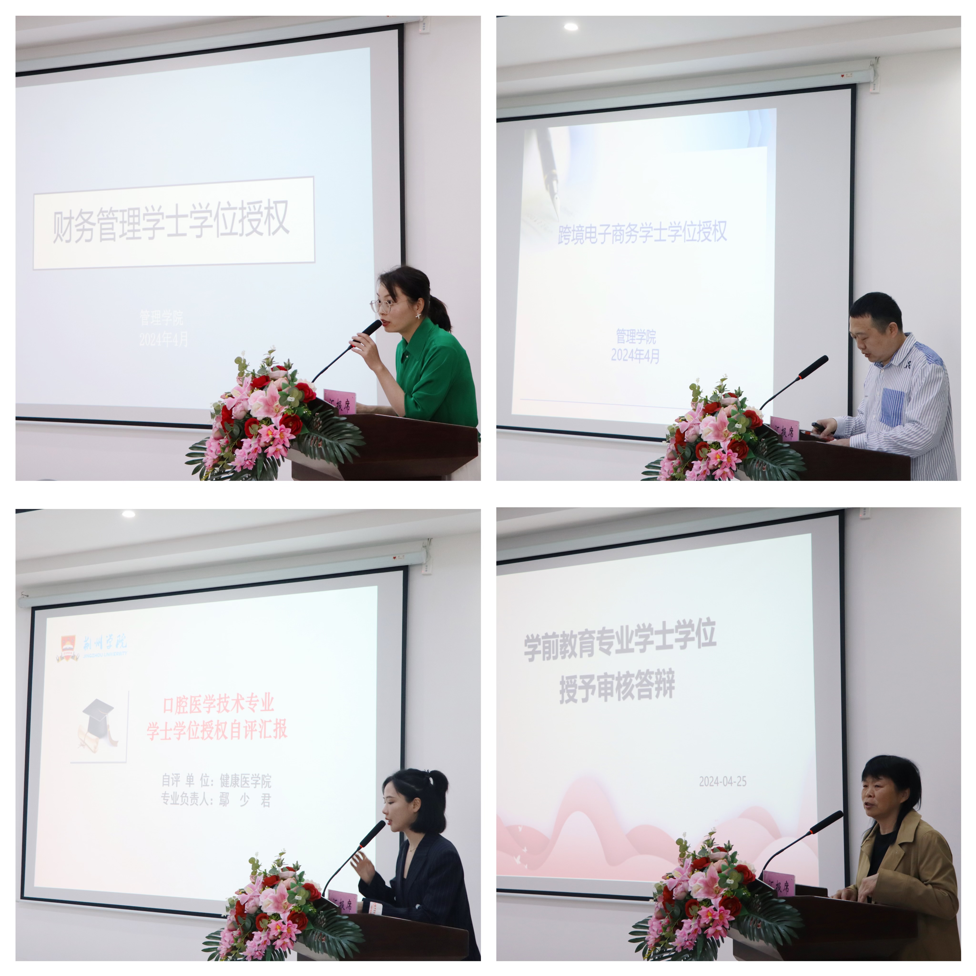 第一阶段评审会议由教务部部长牟海霞主持,各专业负责人进行自评汇报,专家组根据《湖北省学士学位授权专业评价指标体系》,对我校新增学士学位授权专业进行全面评议与审核,并提出宝贵的改进建议。校长助理刘瑾在总结中指出,各专业负责人要根据专家组意见和建议,及时改进,补齐短板,提高人才培养质量。