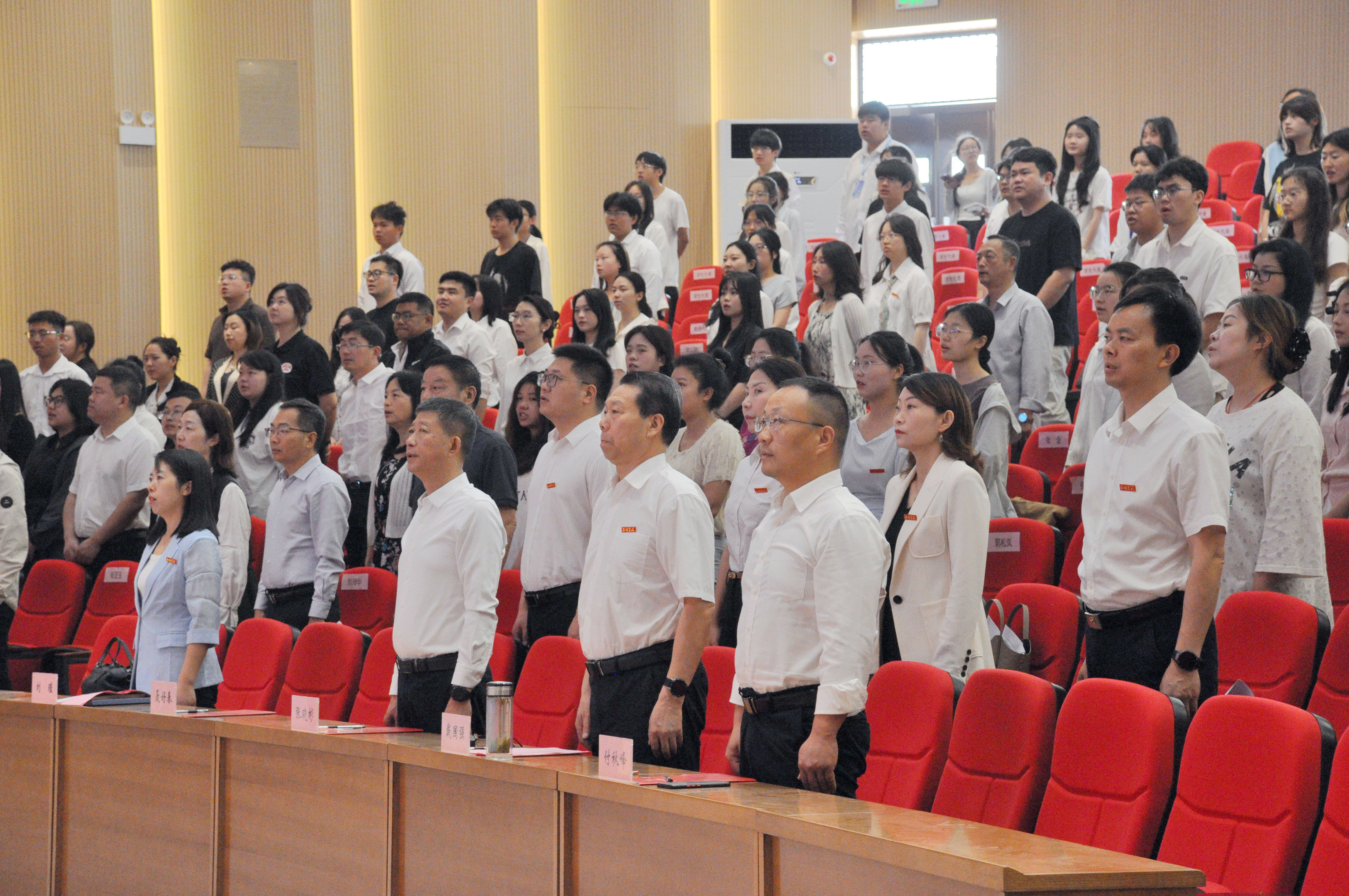 会议伊始,全体师生起立奏唱国歌。随后,副校长刘瑾宣读“三育人”表彰文件。副校长刘瑾、付秋峰和校长戴国强分别为“三育人”先进个人颁奖;党委书记张晓彬为先进单位代表颁发荣誉奖牌。