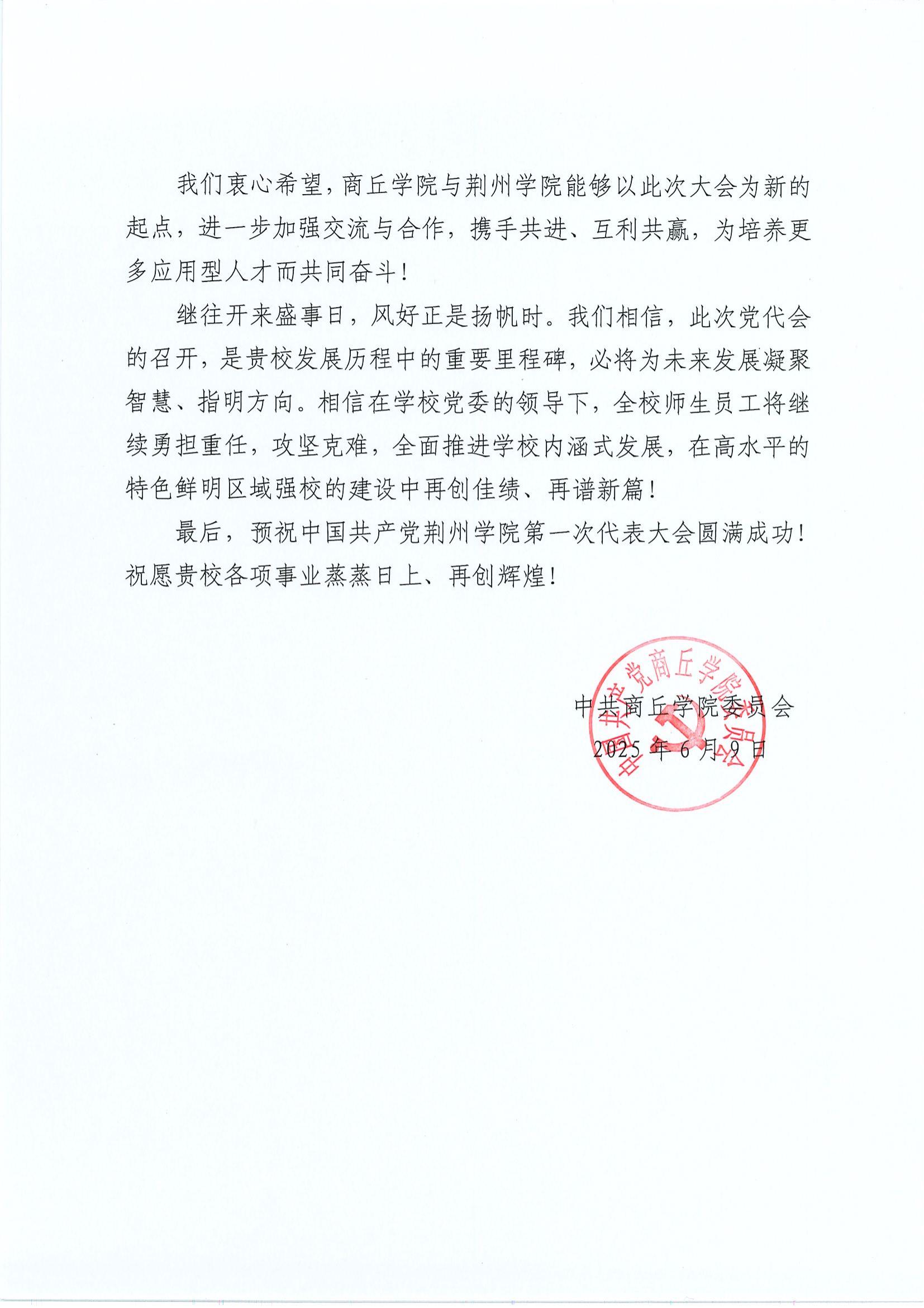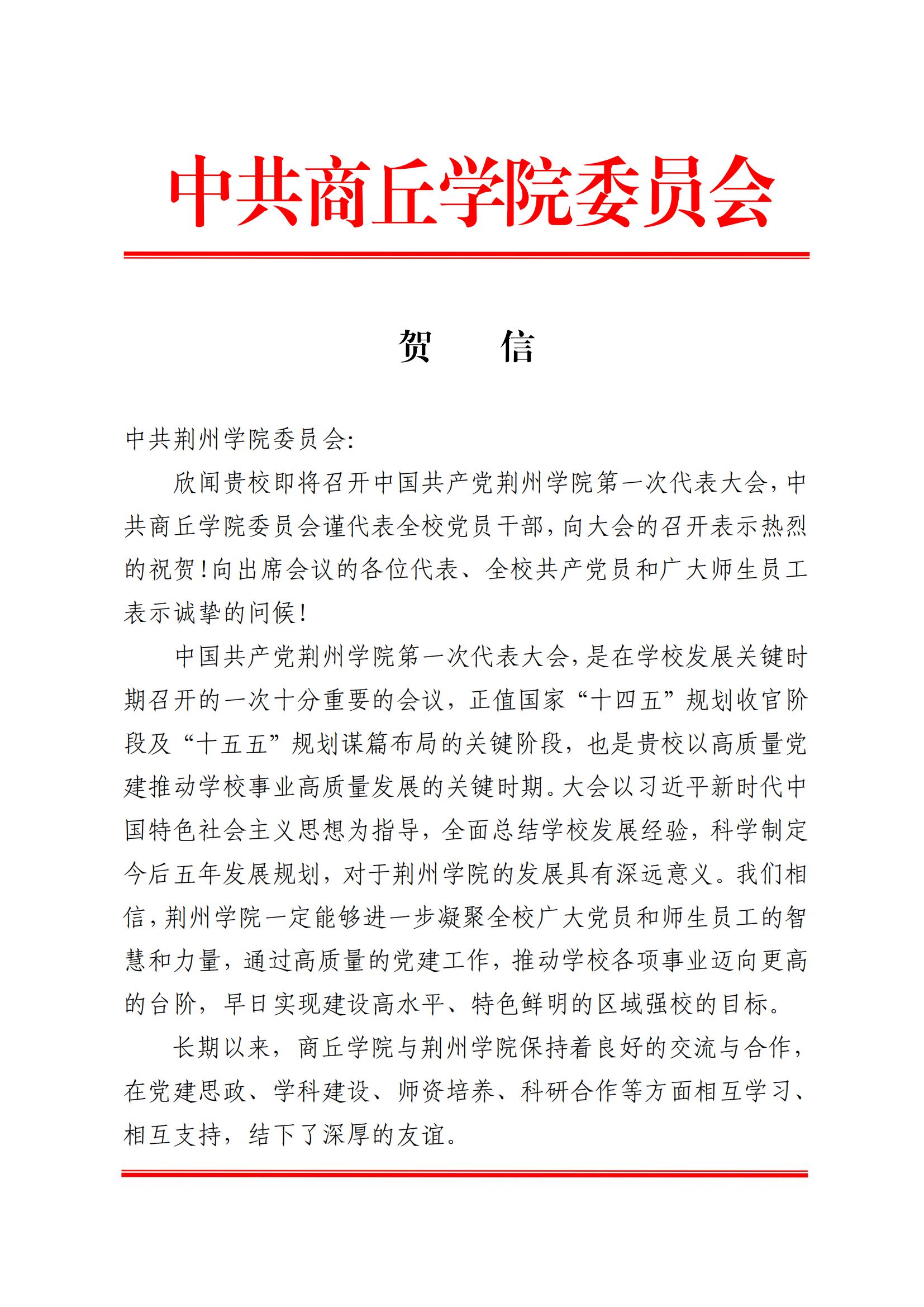 综合要闻 缤纷校园 教学科研 媒体荆院 通知公告 学术动态 【喜迎党代会】各方贺信纷至沓来(三) 来源:党委宣传部 编审:党委宣传部 审核:党委宣传部 签审:党委宣传部 日期:2025-06-09 中国共产党WilliamHill中文官方网站第一次代表大会将于6月11日召开。值此大会召开之际,商丘学院发来贺信,向学校全体党员和广大师生员工表示祝贺,预祝大会胜利召开!本次大会的胜利召开,必将进一步凝聚共识,激发伟力,不断推进学校事业高质量发展再上新台阶、再谱新篇章。全校师生定将在新一届党委领导班子的带领下,踔厉奋发、锐意进取,为建成省内一流、国内知名,高水平的特色鲜明区域强校而不懈奋斗! 上一篇: 【喜讯】荆院学子在湖北省第五届大学生先进成图技术与产品信息建模创新大赛中获奖 下一篇: 【学校动态】我校召开实验(实训)室建设校级论证会 返回列表页 最新文章 【学校动态】学校党委召开2026年春季学期党建... 【组织学习】WilliamHill中文官方网站党委理论学习中心组召开... 【学校动态】我校组织参加2026年本科教学工作... 【校企合作】WilliamHill中文官方网站与湖北康盟中药有限公司... 【学校动态】学校召开2026年校级智慧课程立项... 【喜讯】我校入选全国高校“大思政课”实践教学...
