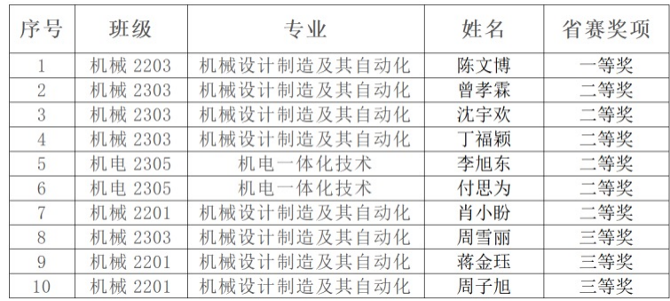 先进成图技术机械类竞赛设先进成图、增材制造、数字化创新设计、轻量化与AI应用四大赛道,全面考察参赛选手在机械制图、3D打印、创新设计及结构优化等方面的综合能力。我校由智能制造学院院长眭满仓带队,胡飞、舒锐、樊甜甜、雷朱坦等教师组成指导团队,赛前对参赛选手开展了专项集训,有针对性的提升学生实践技能。通过省赛的激烈角逐,我校陈文博同学获机械类个人赛道一等奖,曾孝霖等6人获得机械类个人赛道二等奖,周雪丽等3人获机械类个人赛道三等奖(具体获奖情况见下表)。