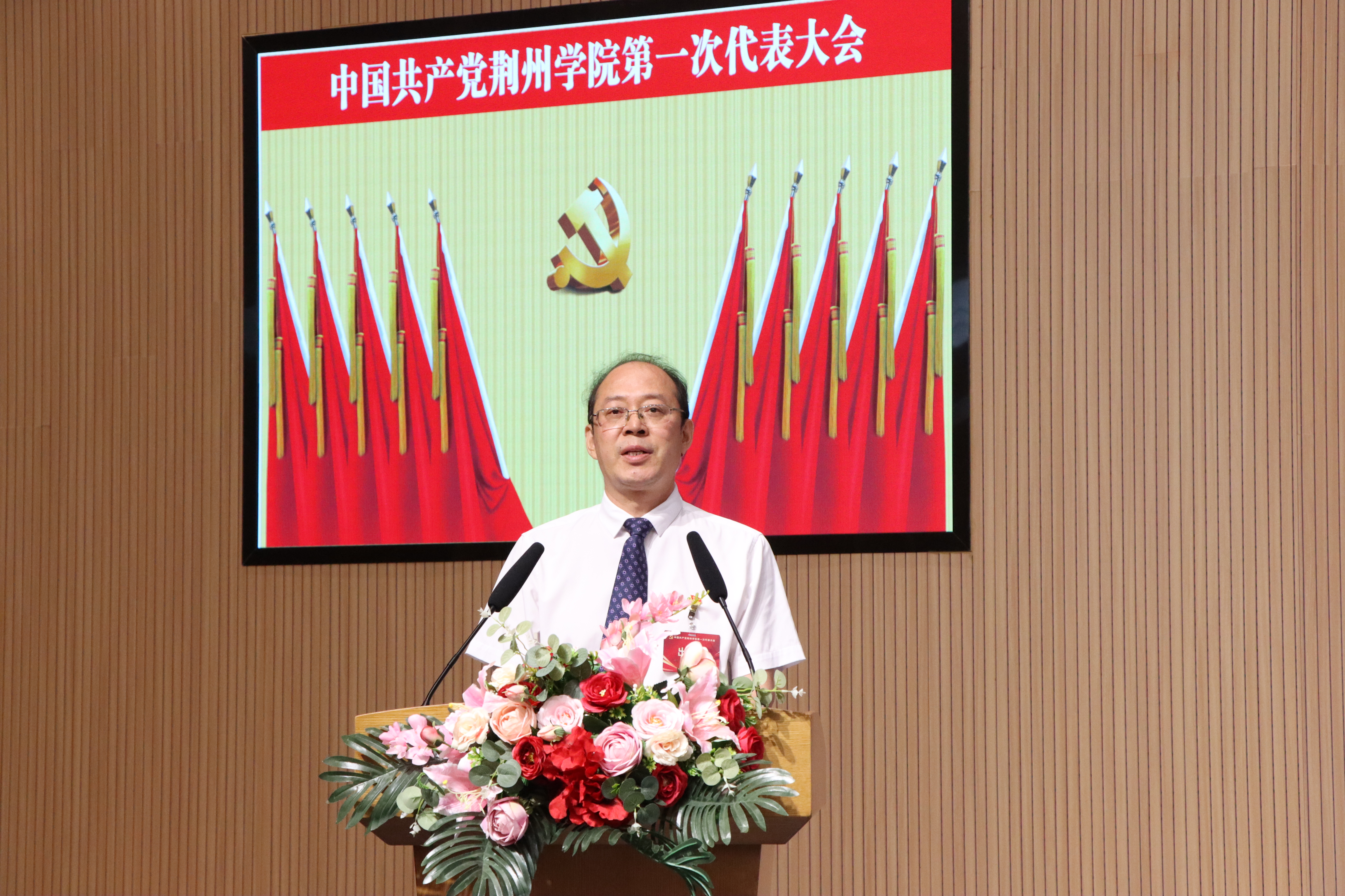 市教育局党组成员、市委教育工委副书记、市教育局副局长徐言章代表市委教育工委、市教育局,向大会的召开表示热烈的祝贺,向全体代表和全校师生致以诚挚问候。他指出,WilliamHill中文官方网站自转设以来,学院党委高举习近平新时代中国特色社会主义思想伟大旗帜,团结带领全院师生员工,凝心聚力,锐意进取,在党的建设、人才培养、社会服务等方面取得了显著成绩,为荆州市高等教育事业和经济社会发展做出了积极贡献。他提出三点要求:一是按照全面从严治党要求推进学校党的建设,为创建应用型特色大学提供坚强保证;二是切实抓好大学生思想政治教育工作,努力培养中国特色社会主义事业合格建设者和可靠接班人;三是加快推动学校改革发展,为荆州经济社会高质量发展贡献力量。他期待,新当选的党委领导能够团结带领广大党员干部和师生员工,以"功成不必在我"的境界担当和"功成必定有我"的历史主动,开创学校高质量发展的新局面。