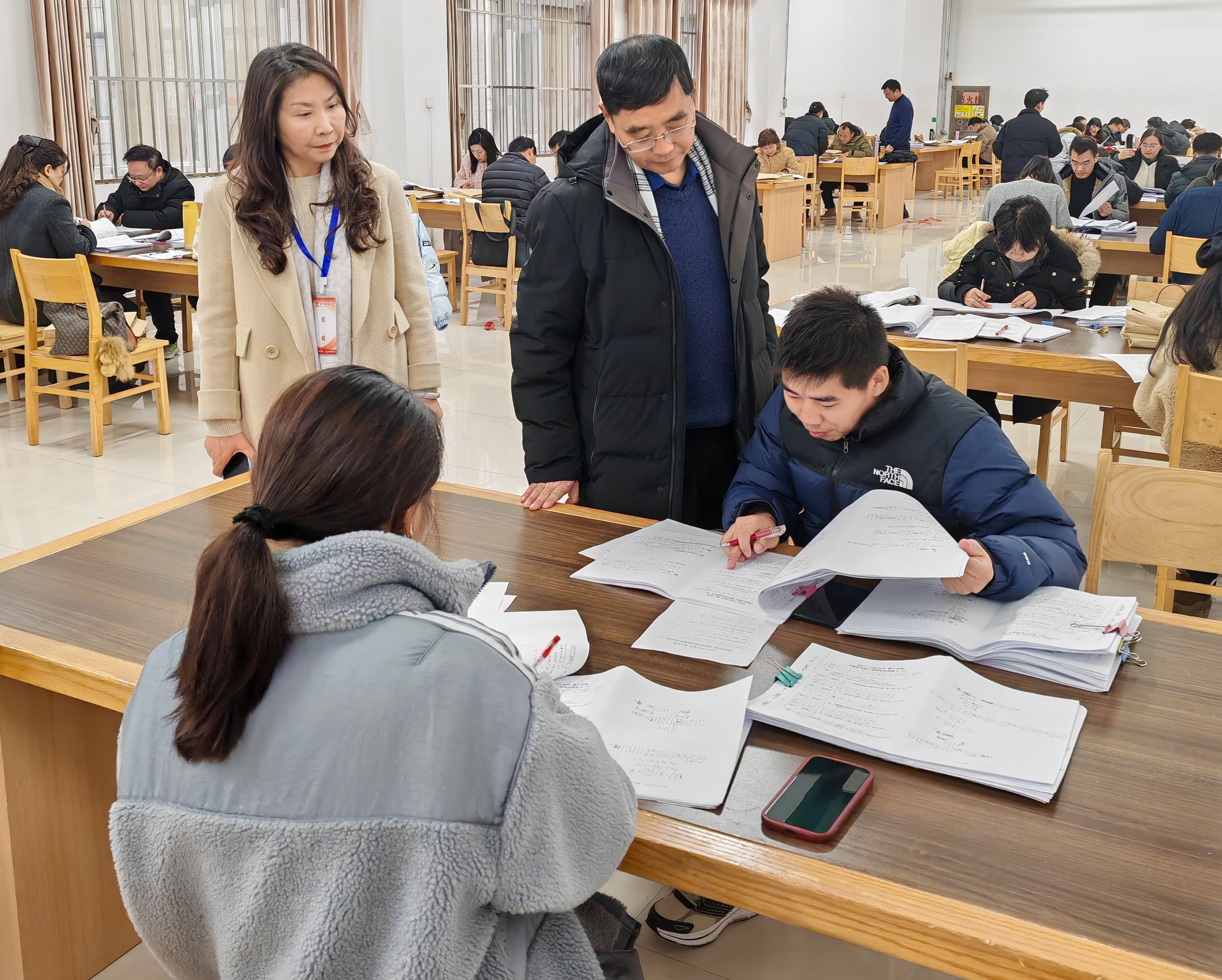 阅卷巡视中,校领导强调了阅卷工作的细致性、严谨性,要求阅卷老师树立责任意识、公平意识。阅卷现场各位老师分工明确、井然有序,针对试卷中出现的问题分析讨论,实事求是,认真阅卷,确保阅卷工作保质保量地完成。