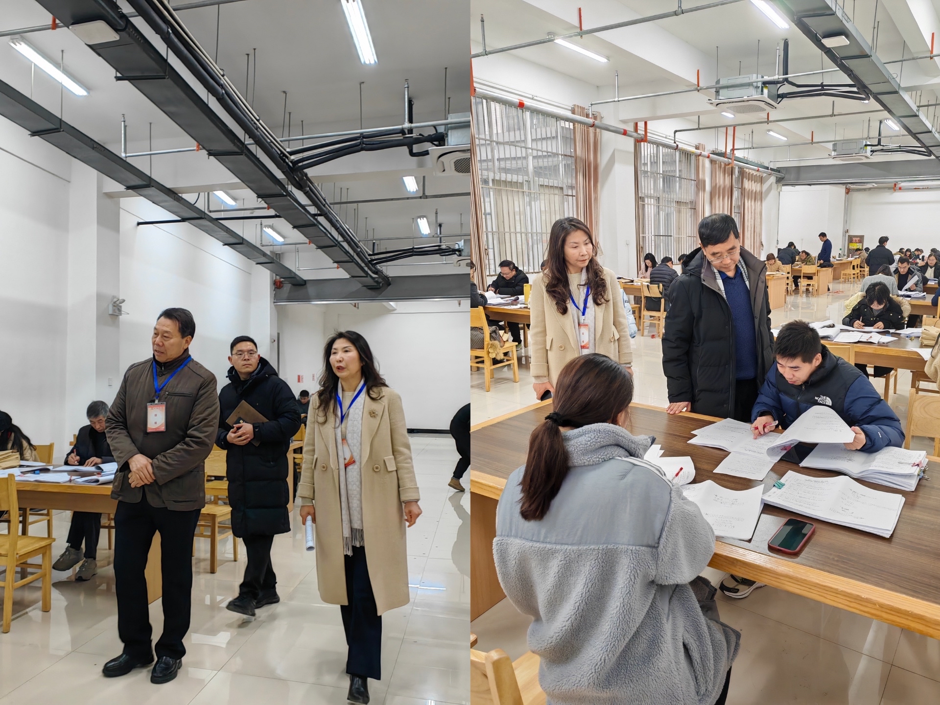 我校2024-2025学年第一学期期末考试于12月23日-12月31日进行,为进一步规范考试管理,促进教学和学风建设,考试期间校长戴国强、副校长聂好春在相关部门负责人的陪同下,深入期末考试现场,检查学生考试及教师阅卷情况,指导考务工作。